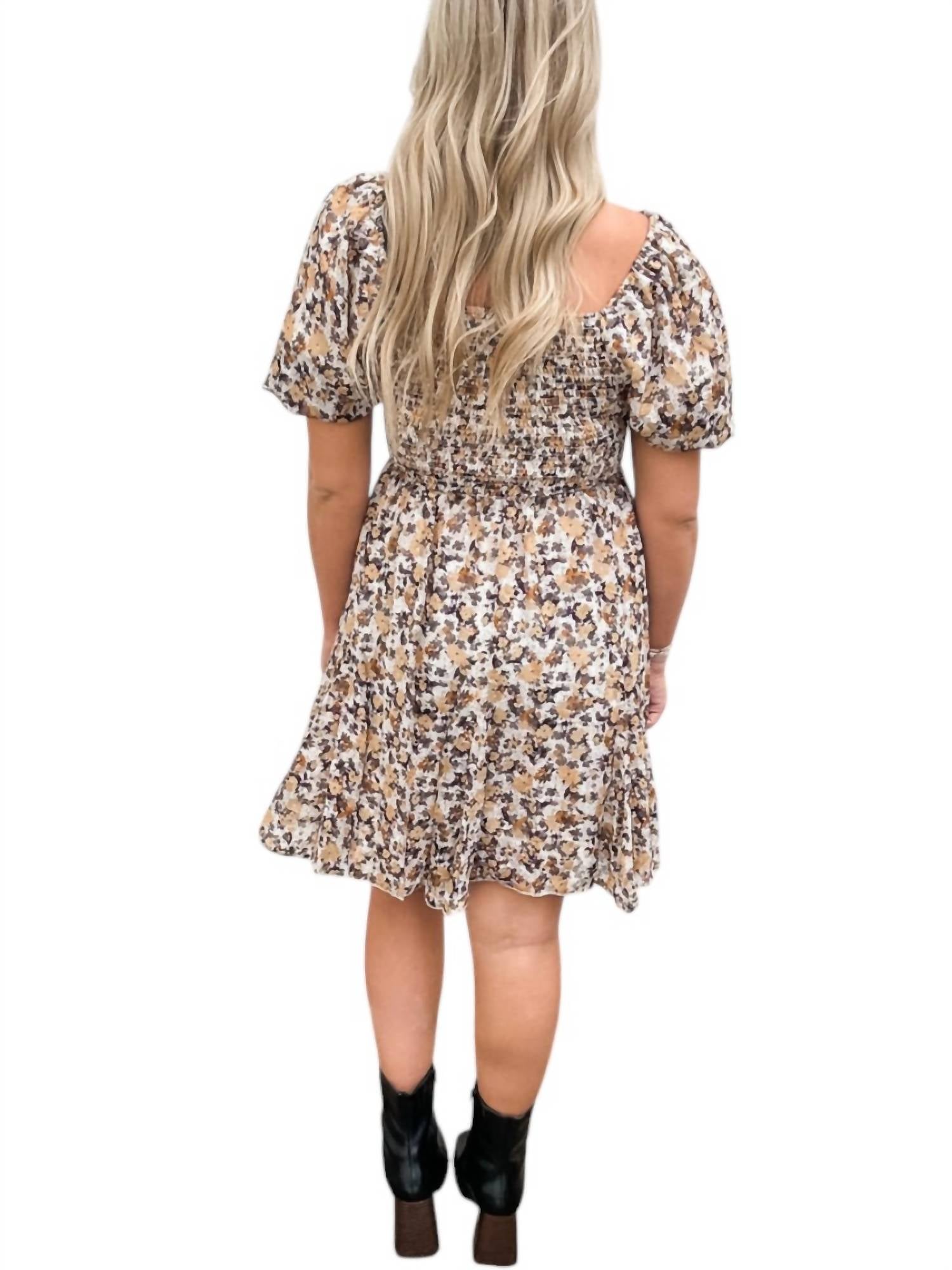 The Ru Dress by Mikarose in Golden Ember combines elegance and playfulness with its short puff sleeves and A-line silhouette. Made from quality polyester, this floral-patterned dress features a sweetheart neckline, pull-on closure, and practical pockets. Perfect for any occasion, it offers both style and comfort.