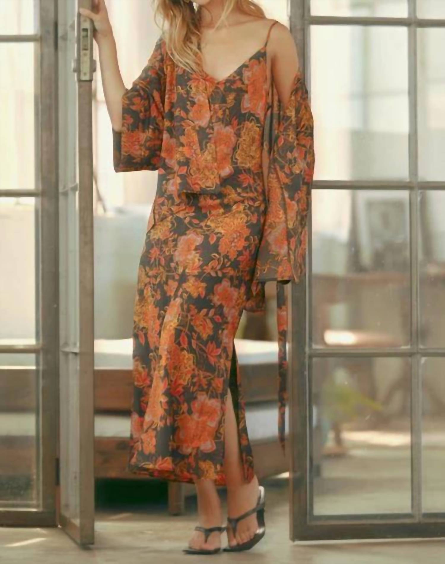 The perfect length dress does exist. Introducing the Floral Midi Dress by Entro, a stunning choice for your summer vacation wardrobe. This slip-style dress in an elegant black floral pattern features delicate spaghetti straps and a flattering V-neckline. Made with luxurious satin that falls to a midi length, it boasts a convenient side zipper for easy wear. Care instructions recommend hand washing and line drying to maintain its impeccable quality.