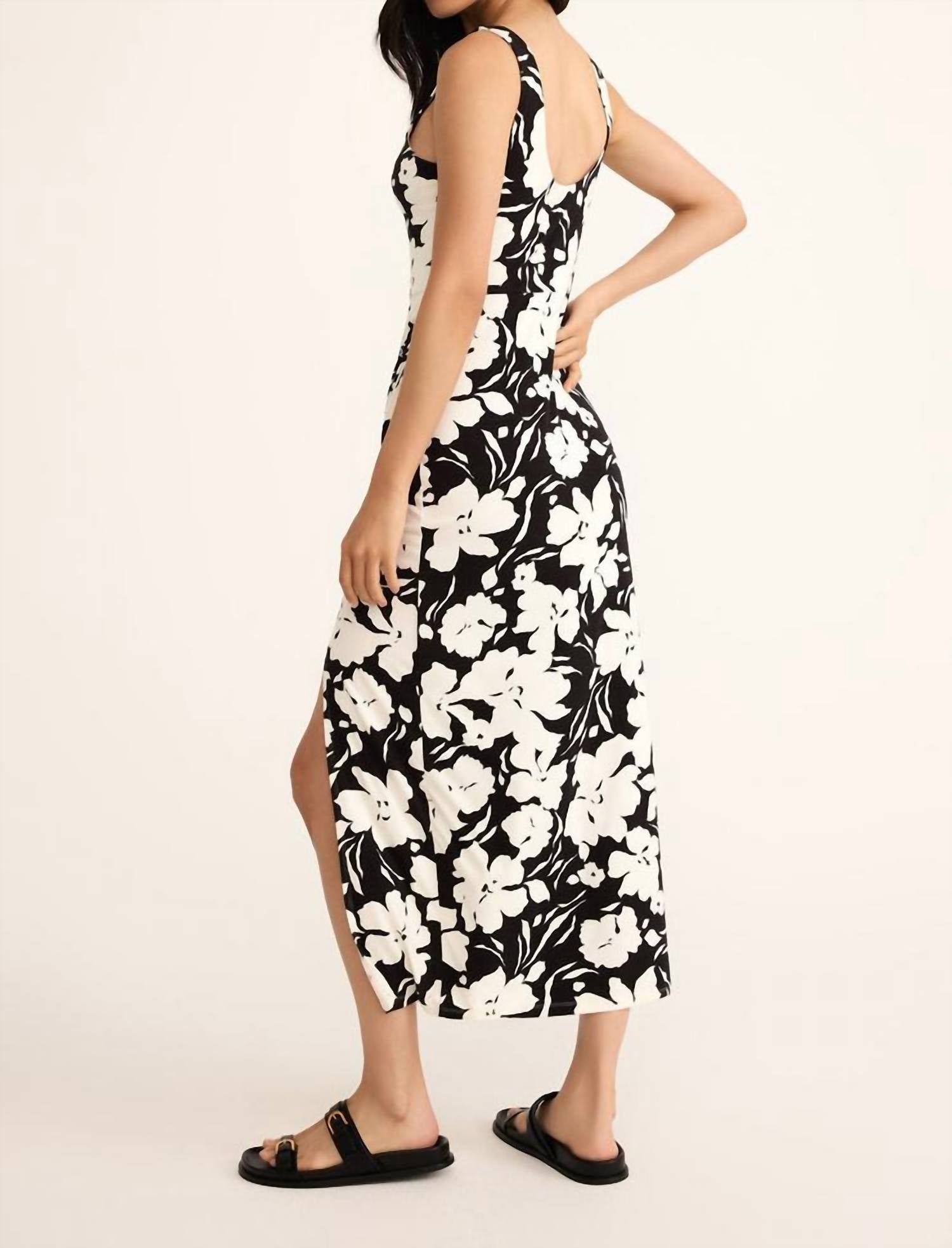 Just add slides or mules and you are good to go. Step into effortless elegance with the Valencia La Plage Midi Dress by Z Supply, a black floral slip dress perfect for sun-filled getaways. This sleeveless design with an open back and high neckline brings a breezy yet sophisticated vibe, complemented by a chic side slit. Crafted from 90% Rayon and 10% Spandex, it ensures a comfortable fit, with a length of 52 1/2 inches and a bust of 29 inches for size small. Care for this boho chic piece is easy with machine wash instructions and a recommendation to lay flat to dry.