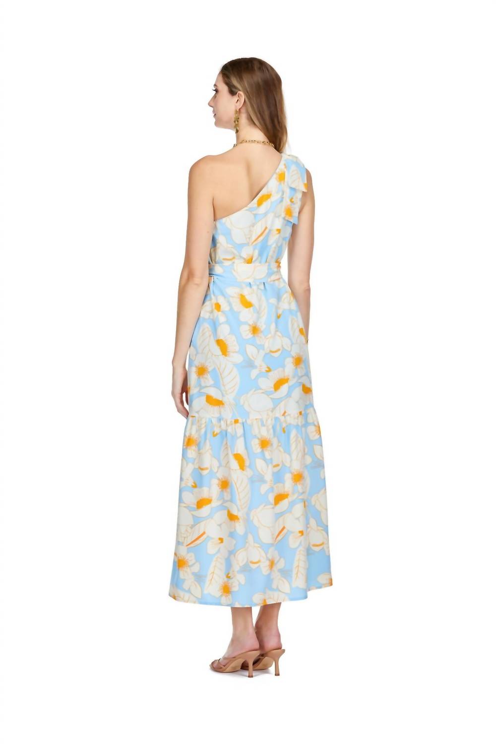Show just the right amount of skin in this one-shoulder dress. Discover the Women's One Shoulder Bow Maxi Dress by Jade, a stunning boho chic piece in a vibrant Blue Lotus floral pattern. Designed for summer vacations, this sleeveless dress features a unique one-shoulder style with a chic square neckline. Its A-line silhouette is both flattering and comfortable, complete with pockets for practical elegance. Closure: Pull on. Care: Hand wash. Ideal for any getaway, this dress captures effortless style.
