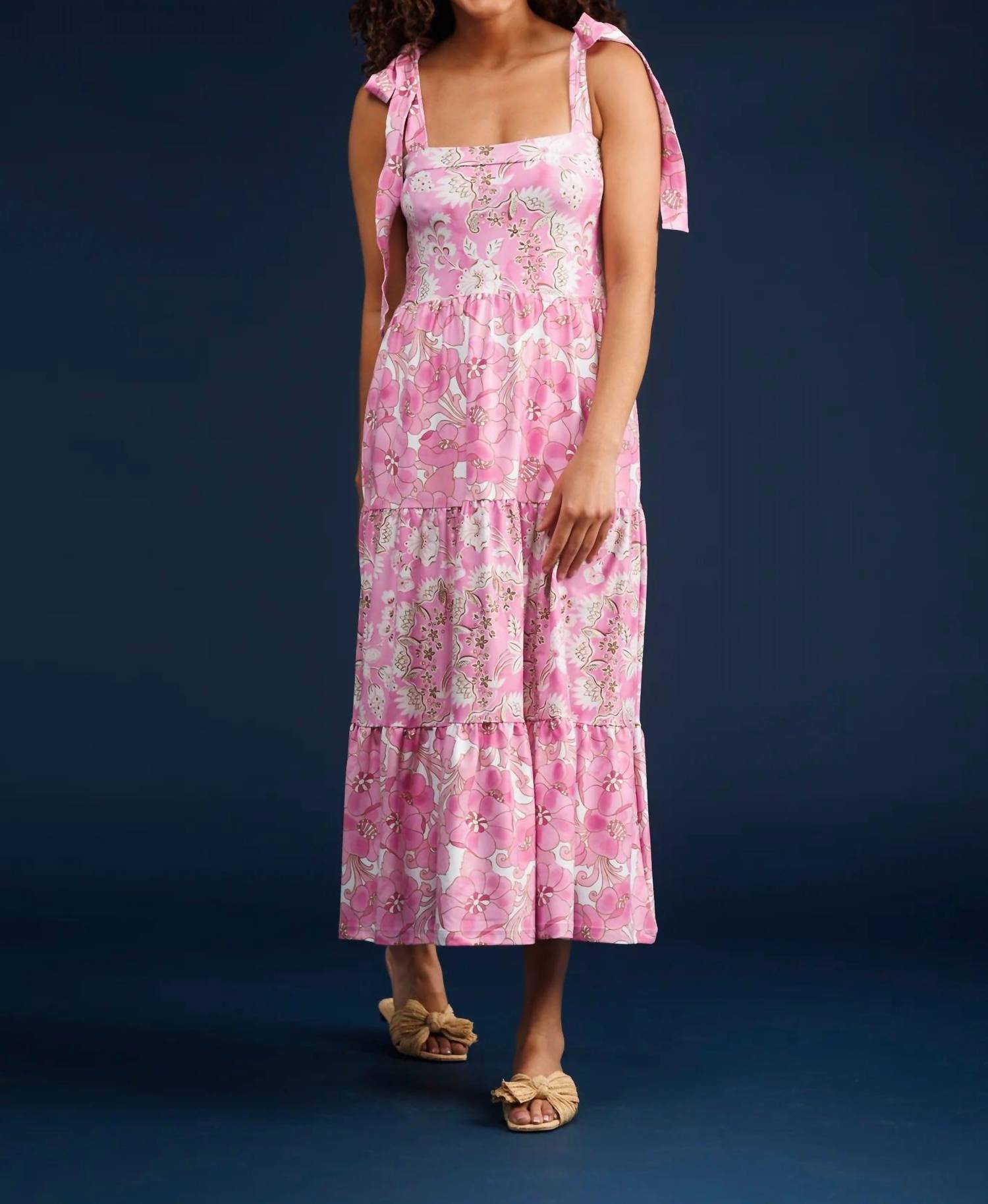 A midi dress so versatile, your options for wearing it are endless. The Smith & Quinn Petunia Patisserie Sage Dress is an embodiment of comfort and style, crafted in S&Q Signature Matte Italian Stretch. This sleeveless, tiered midi dress boasts a striking floral pattern in pink, perfect for a summer vacation or Easter holiday. It features a squareneck and an easy-fit A-line silhouette, with pull-on closure for effortless wear. Made from wrinkle-resistant and machine-washable nylon, this piece blends convenience with boho chic vibes. Model is wearing a size xsmall.