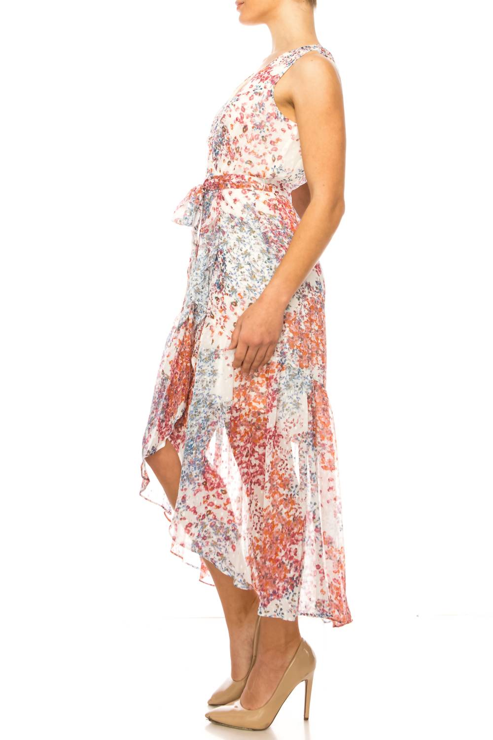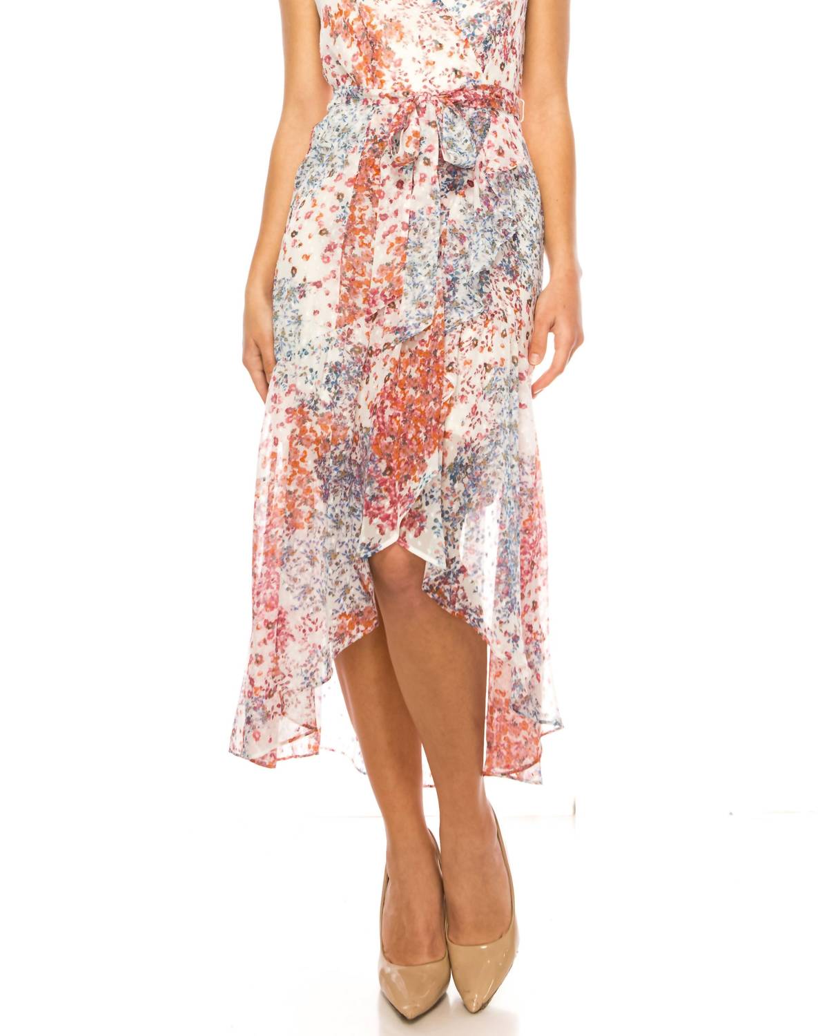 The pefect high-low dress for those transitional seasons. Embrace elegance with the High-low Floral Sleeveless Dress by Maison Tara, a charming choice for daytime events with its lively floral pattern and wrap silhouette. Crafted from burnout chiffon with a 100% polyester lining, this dress showcases a flattering V-neckline and a zip closure at the back. The absence of sleeves paired with the high-low design offers a blend of modern style and classic femininity. Care for this stunning piece by hand washing it in cold water.