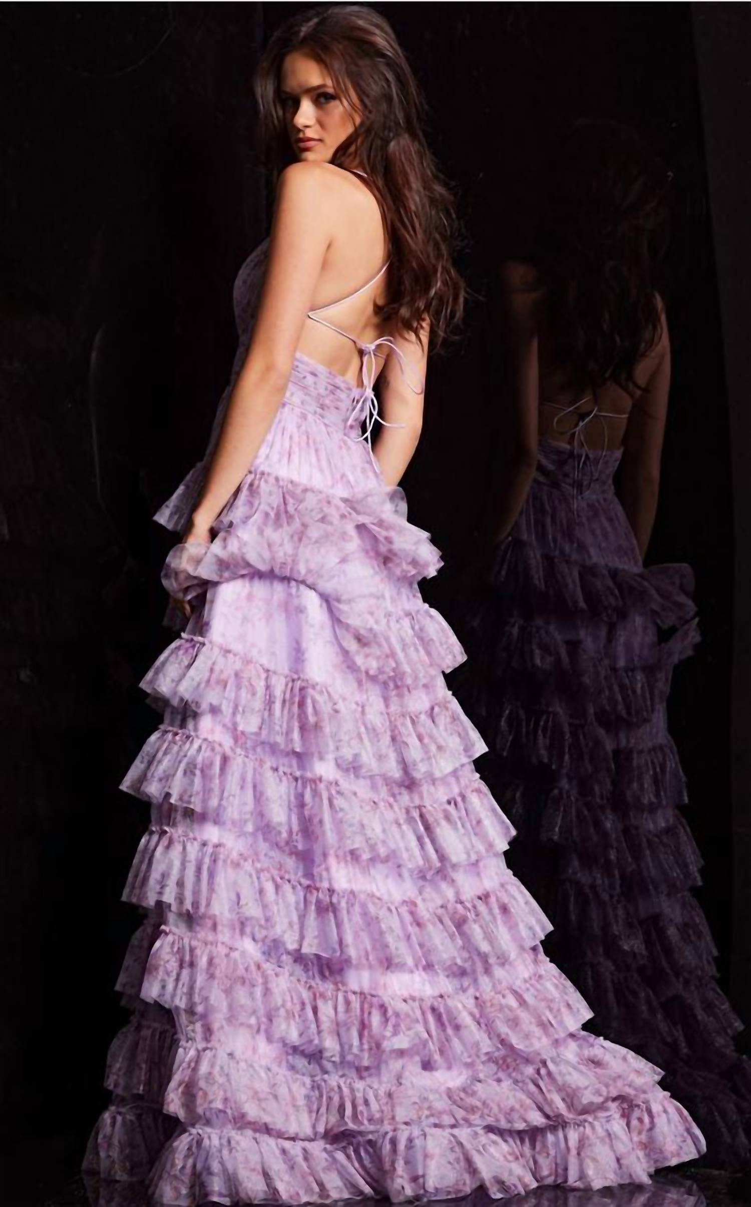 Jovani - V Neckline Print Dress