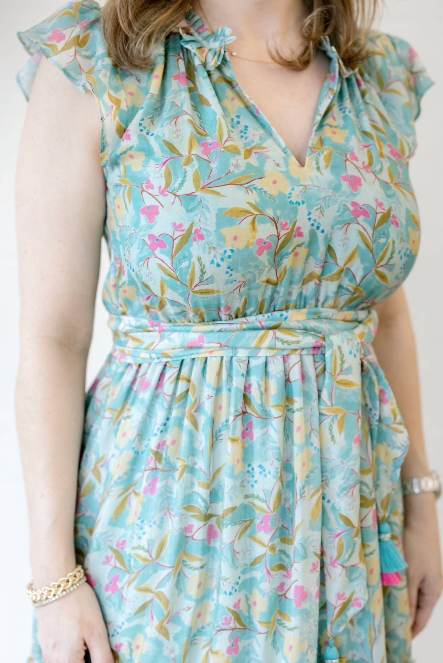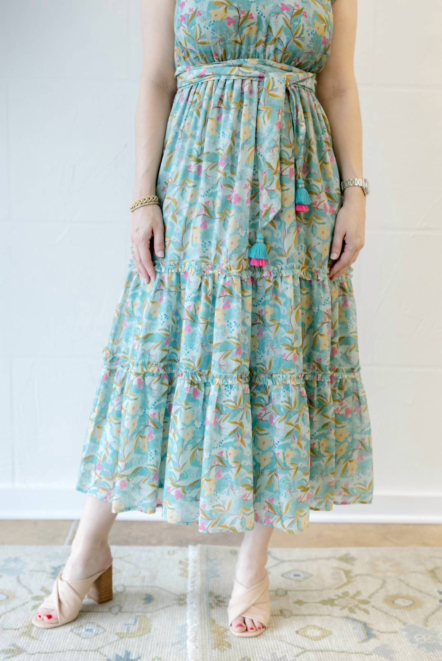 The perfect length dress does exist. Presenting the Kate Dress by Bella Tu, an elegant choice for the fashion-forward woman. Featuring cap sleeves and a flattering empire waist silhouette, this floral pattern midi dress offers a stylish V-neckline. Closure is a convenient pull-on style, ensuring ease and elegance. Make a statement in vibrant multi-colors with this must-have piece.