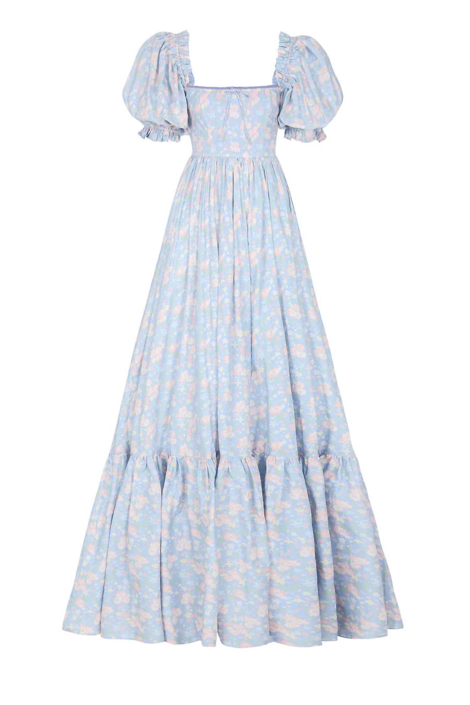 Who doesn't love a good maxi dress? This one you'll be reaching for season after season. The Terrace Maxi Dress by Selkie is a beautiful addition to your spring wardrobe, perfect for Thanksgiving engagements. Crafted from breathable cotton, this dress features short elastic puff sleeves, a flattering scoop neckline, and a feminine empire waist silhouette. It boasts a drawstring bust tie and an invisible zipper closure for a seamless finish. The gathered ruffle hem adds a boho chic touch to this floral masterpiece.