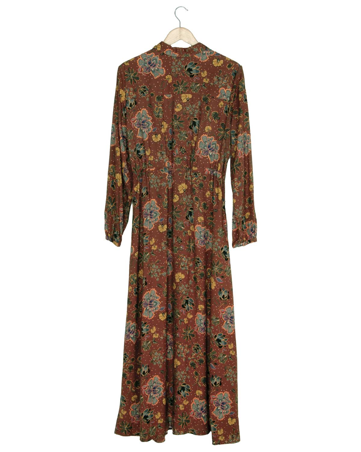Style this maxi with your favorite statement necklace and sandals for the perfect look. Introducing the Floral Maxi Dress by Cotelac, a stunning piece that blends vibrant orange floral patterns with exquisite design. This empire waist dress features long sleeves and a statement collar, crafted from high-quality polyester for a sleek finish. It includes convenient pockets and a tie closure to adjust for the perfect fit. Ideal for any occasion, this dress redefines elegance in vibrant style.