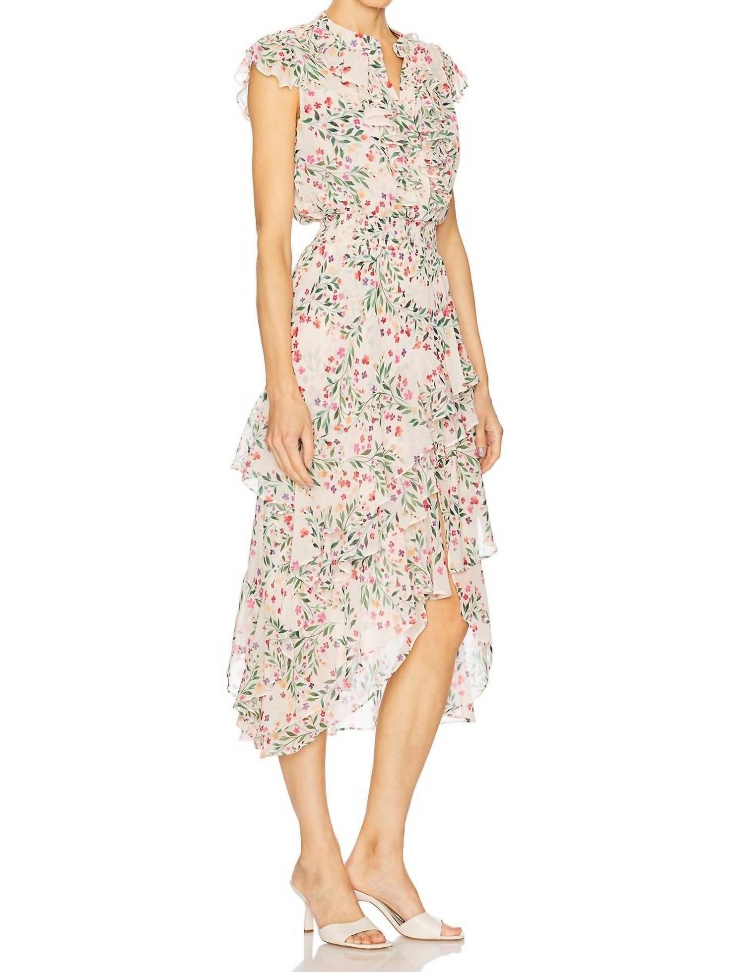 The perfect length dress does exist. Crafted from midweight chiffon, this dress features a cinched elastic waist for a flattering shape. Designed with front button closures, soft ruffle accents, and an asymmetrical hem, it combines feminine charm with effortless style. Made from 100% polyester for a flowy, lightweight finish.