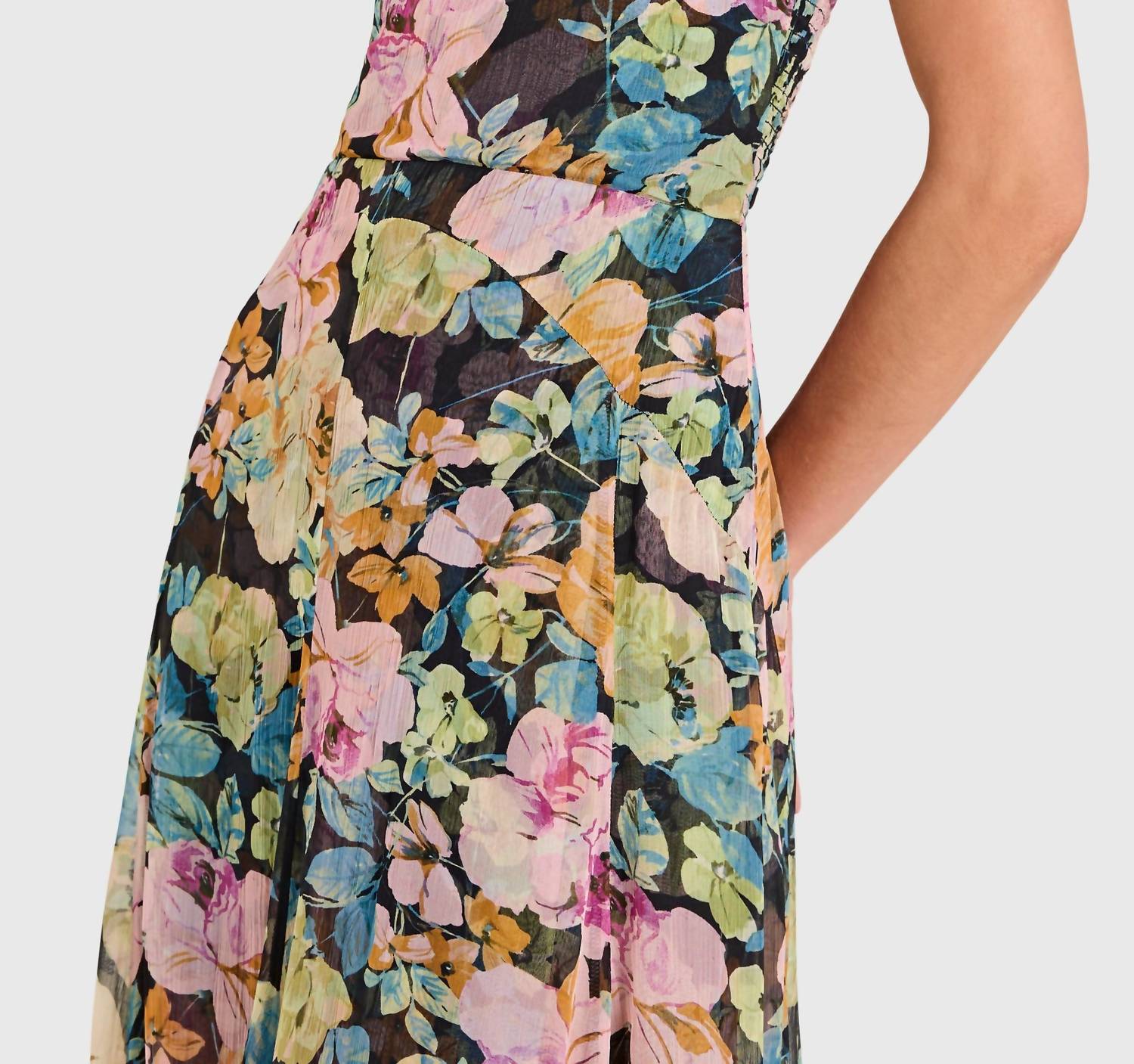 A cool twist on a classic style dress. Experience the elegance of Amanda Uprichard's Monterey Dress, featuring a captivating Lisboa Print in a floral design. This asymmetrical fit-and-flare silhouette is strapless with a chic off-the-shoulder neckline, perfect for spring and vacation occasions. Made from viscose, it ensures a comfortable, true-to-size fit. Closure: Convenient zip closure. Care: Dry clean only.