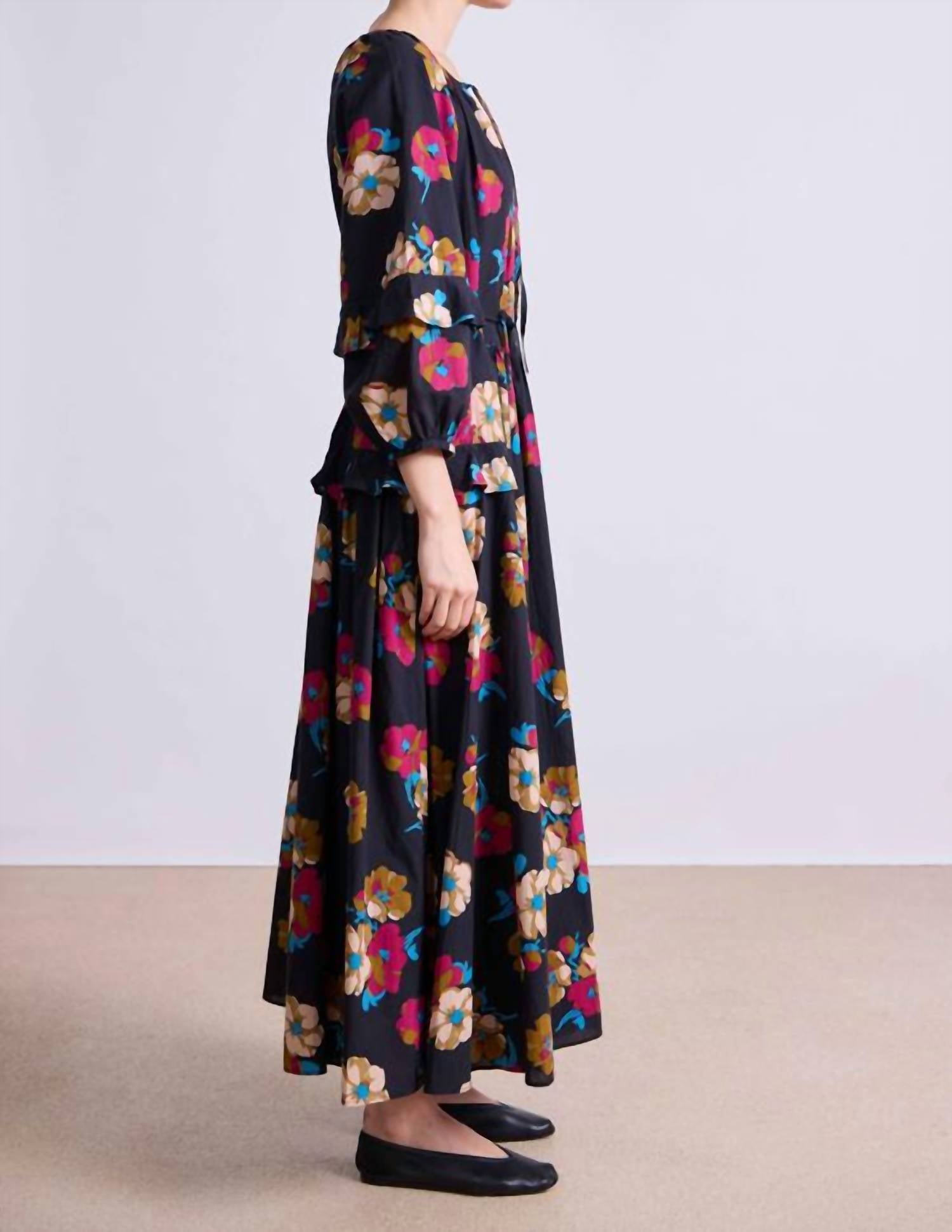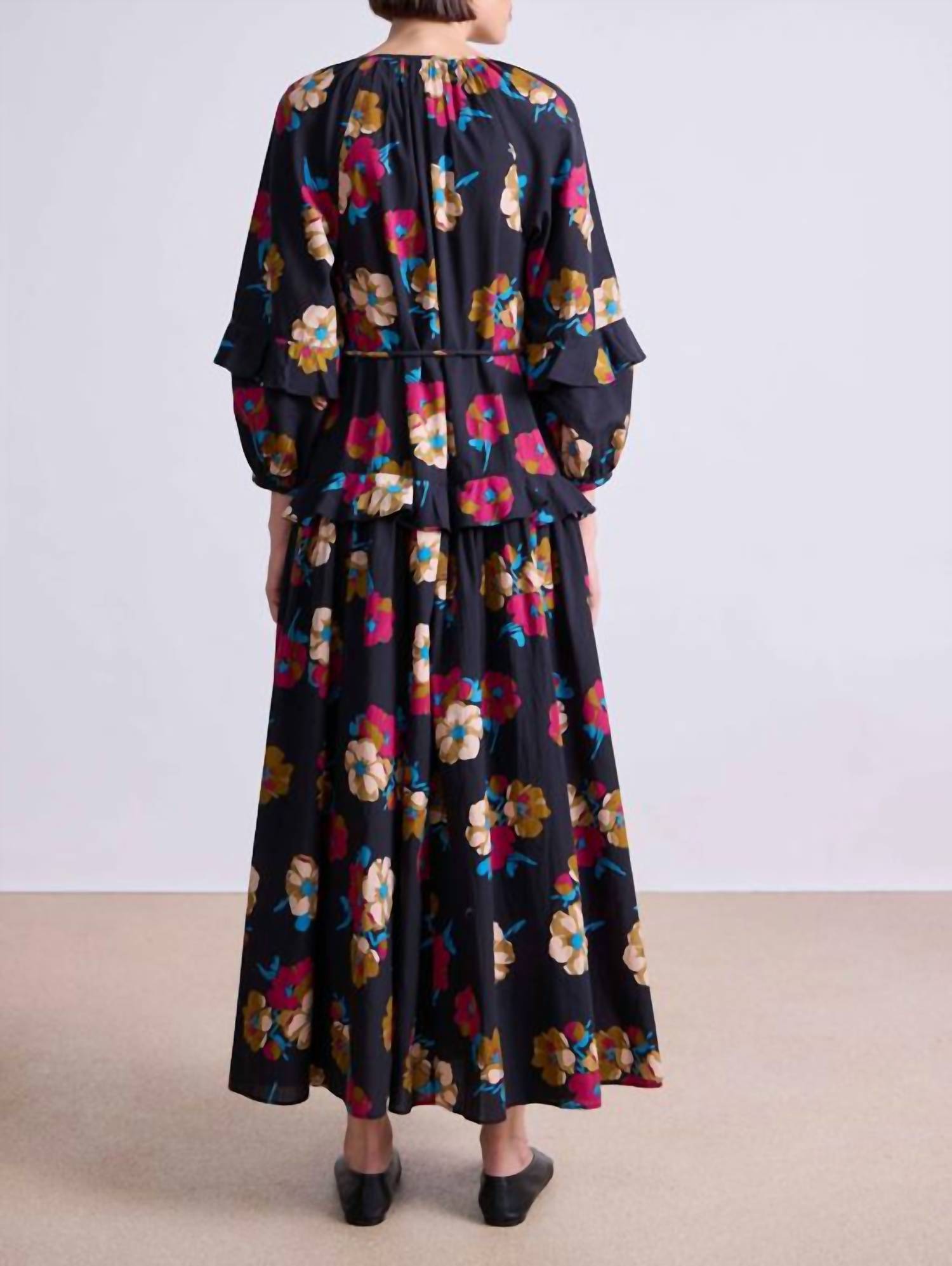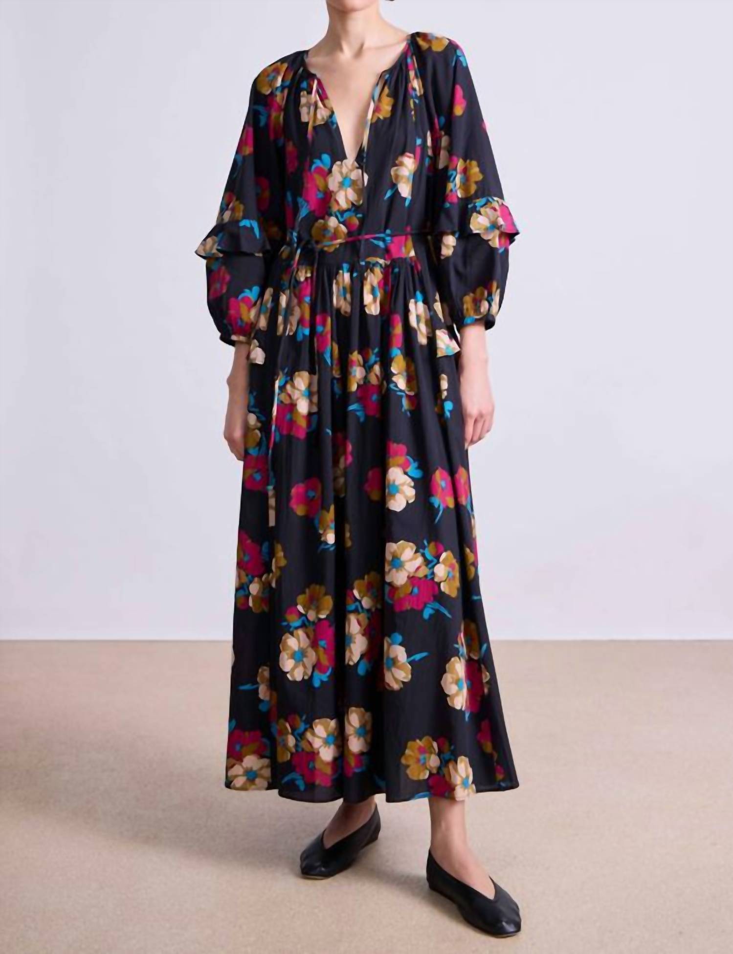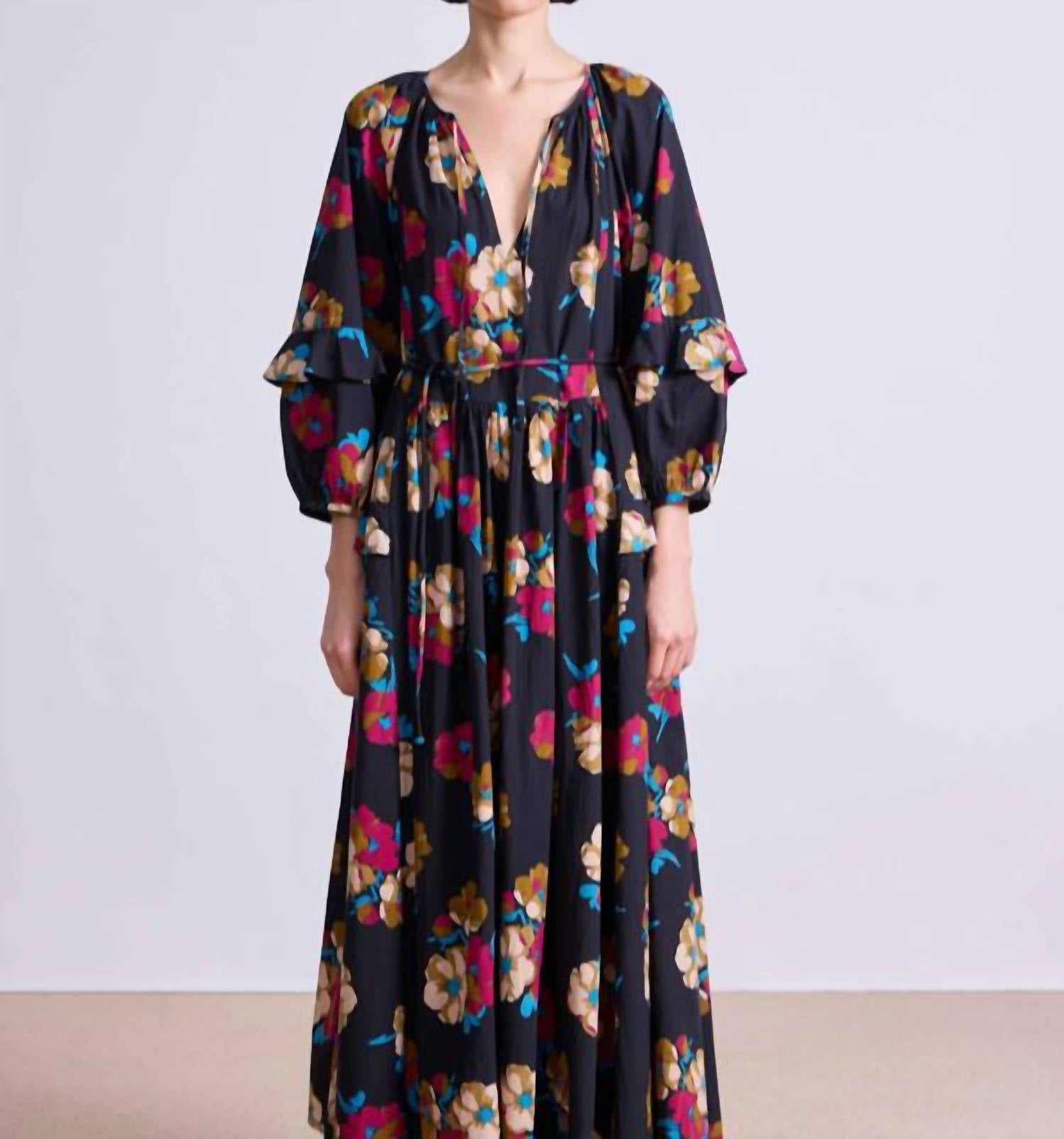 A maxi dress that is just as cute as it is comfortable. Discover effortless elegance with the Skala Maxi Dress by APIECE APART, a must-have for Boho Chic fashion enthusiasts. This full-length dress, made from 100% organic cotton and featuring a romantic Floating Floral print, offers a flattering wrap silhouette with a V-neckline. Sleeve Length: Long Sleeve. Closure: Tie closure. Care: Machine wash. Ideal for spring days and travel occasions, this dress perfectly combines style and comfort.