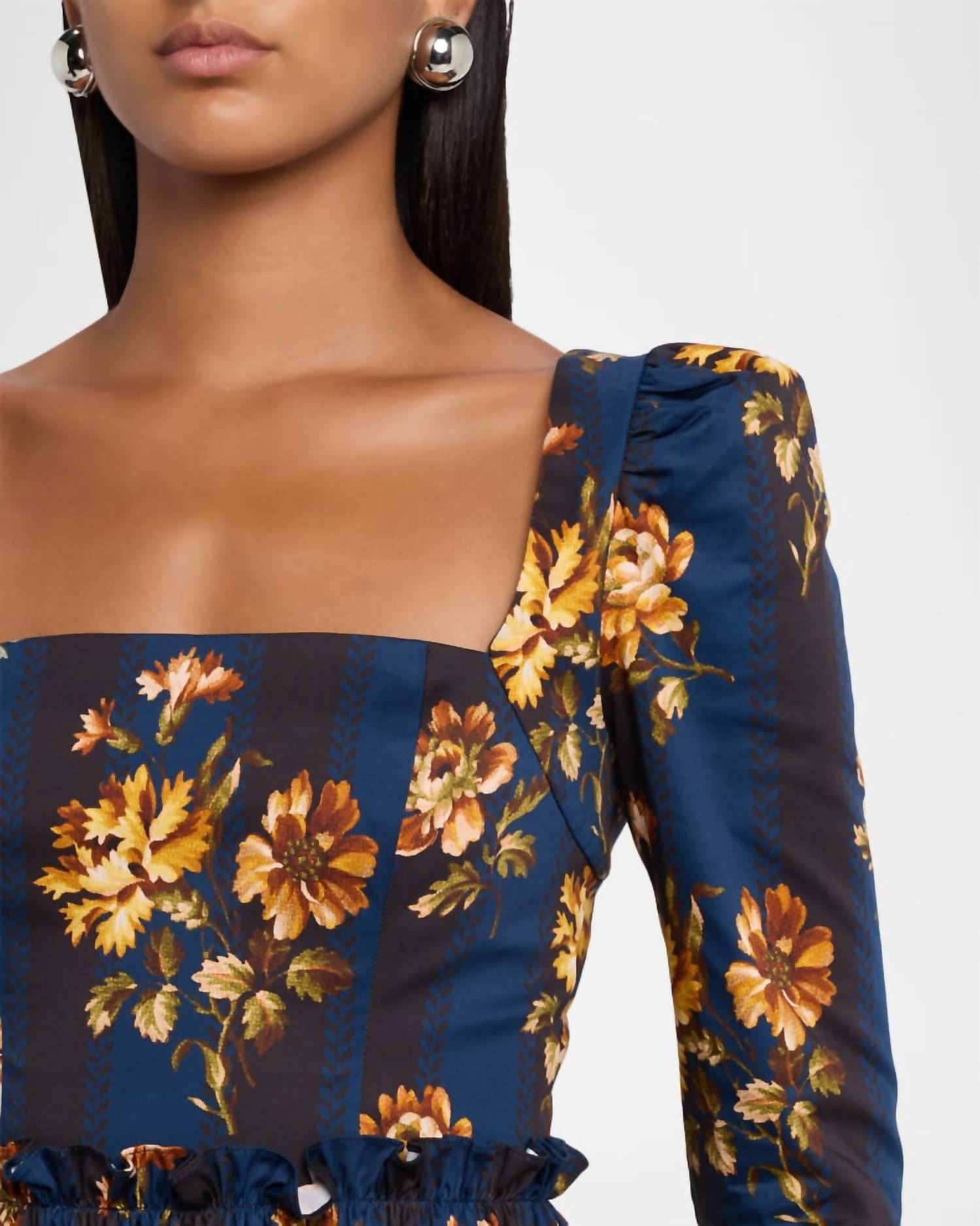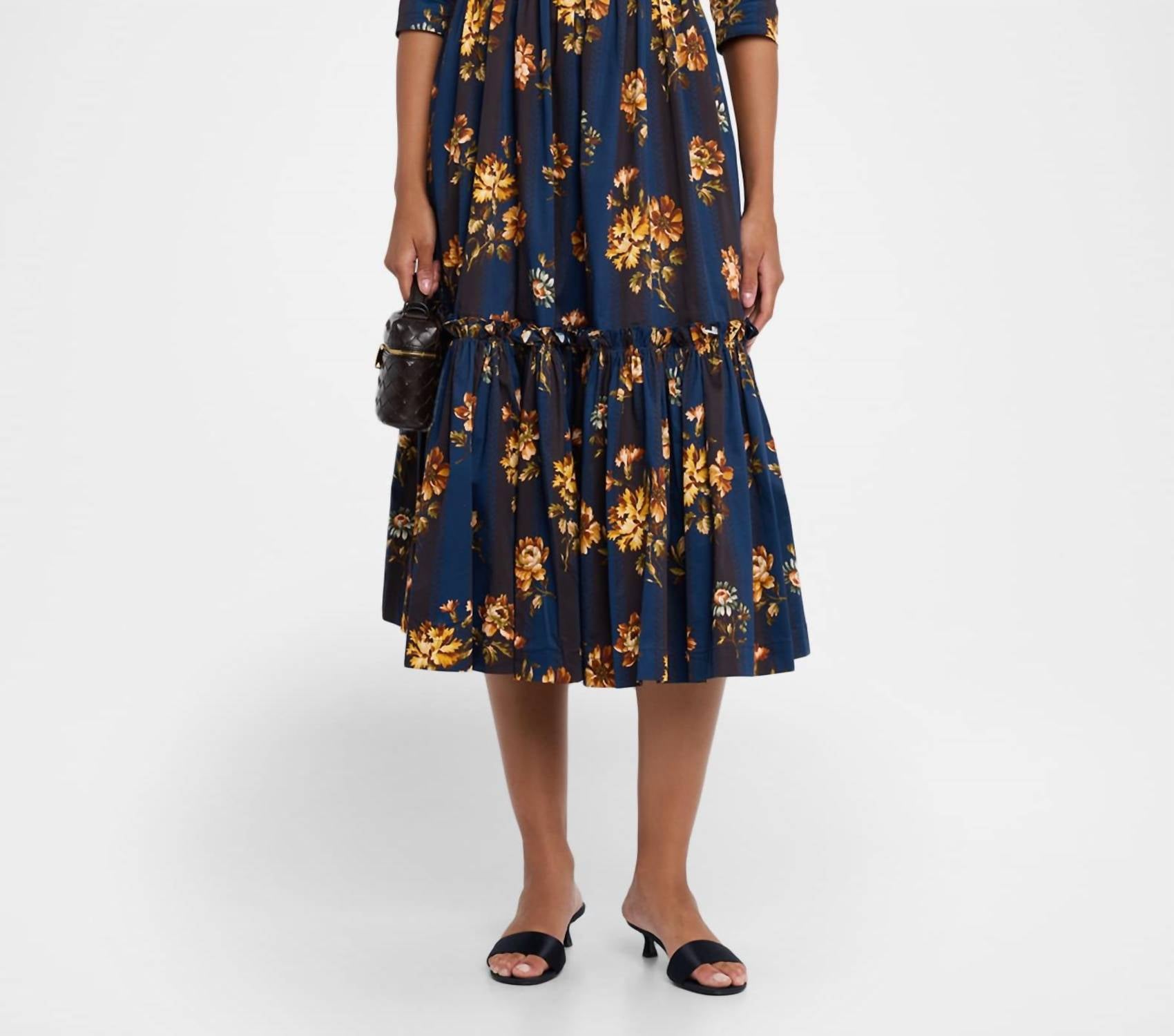 A midi dress so versatile, your options for wearing it are endless. Introducing the Cara Cara Hill Printed Cotton Sateen Midi Dress, a perfect highlight for your wardrobe in Blue Amour Flor. Featuring three-quarter sleeves, this dress is made from a Cotton Blend of 97% Cotton and 3% Spandex for added stretch. The elegant A-line silhouette is complemented by a vivid floral pattern, ideal for both spring and dinner party occasions. Crafted without pockets and with a zip closure, the dress maintains its refined look, with hand wash care recommended.