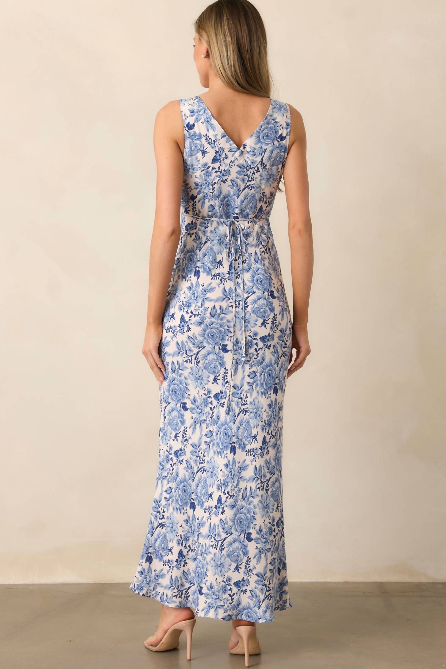 Who doesn't love a good maxi dress? This one you'll be reaching for season after season. Step into elegance with the Floral Maxi Dress by Dress Forum, a stunning piece perfect for holiday parties or a summer soirée. This blue dress boasts a sleeveless design and a flattering mermaid silhouette with a chic V-neckline and a self-tie back detail. Crafted from a 50% Viscose and 50% Rayon blend, with lining made of 95% Polyester and 5% Spandex, this dress is the epitome of comfort and style. Care instructions include hand washing cold and line drying to preserve its exquisite floral pattern.