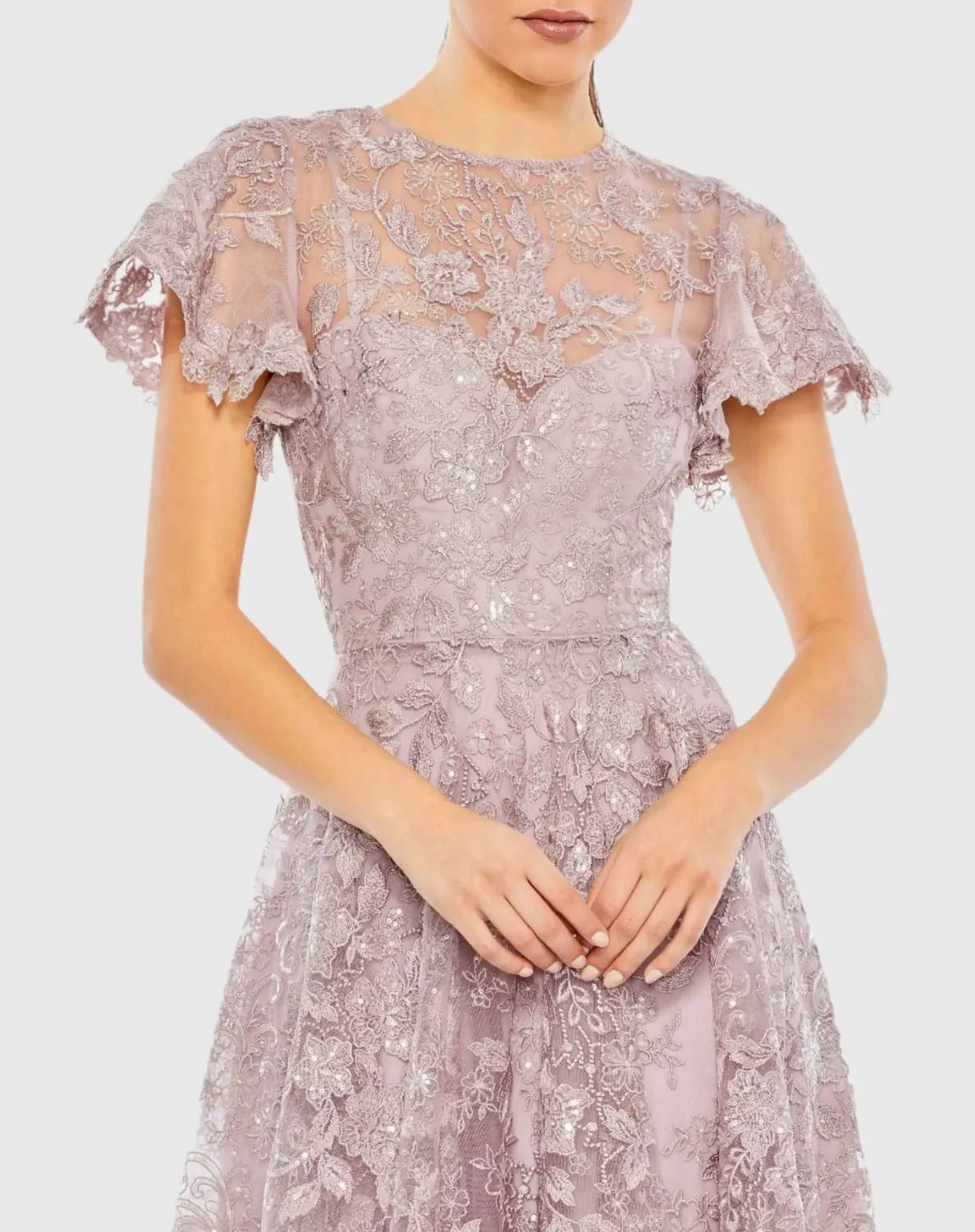 Mac Duggal - Embroidered High Neck Cap Sleeve A Line Gown