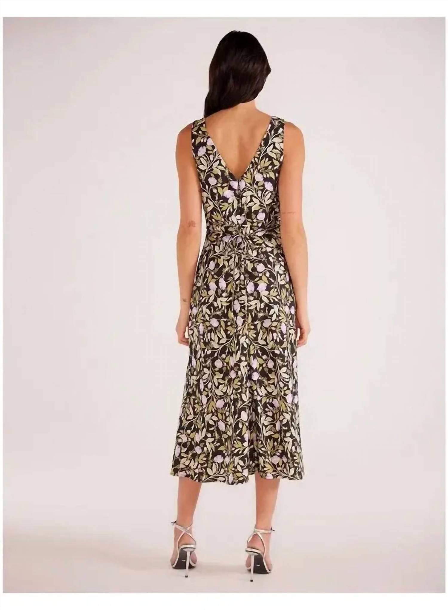 The perfect length dress does exist. Introducing the Nocturne Bias Cut Midi Dress by MINKPINK, a stunning option for elegant occasions. This sleeveless sheath dress features a chic floral pattern on a dark base, crafted from a 85% Viscose 15% Polyamide blend for a soft drape. Its flattering V-neckline complements the discreet zip closure at the back, ensuring a polished appearance. Care instructions recommend hand washing in cold water to preserve the quality and vibrancy of the fabric.
