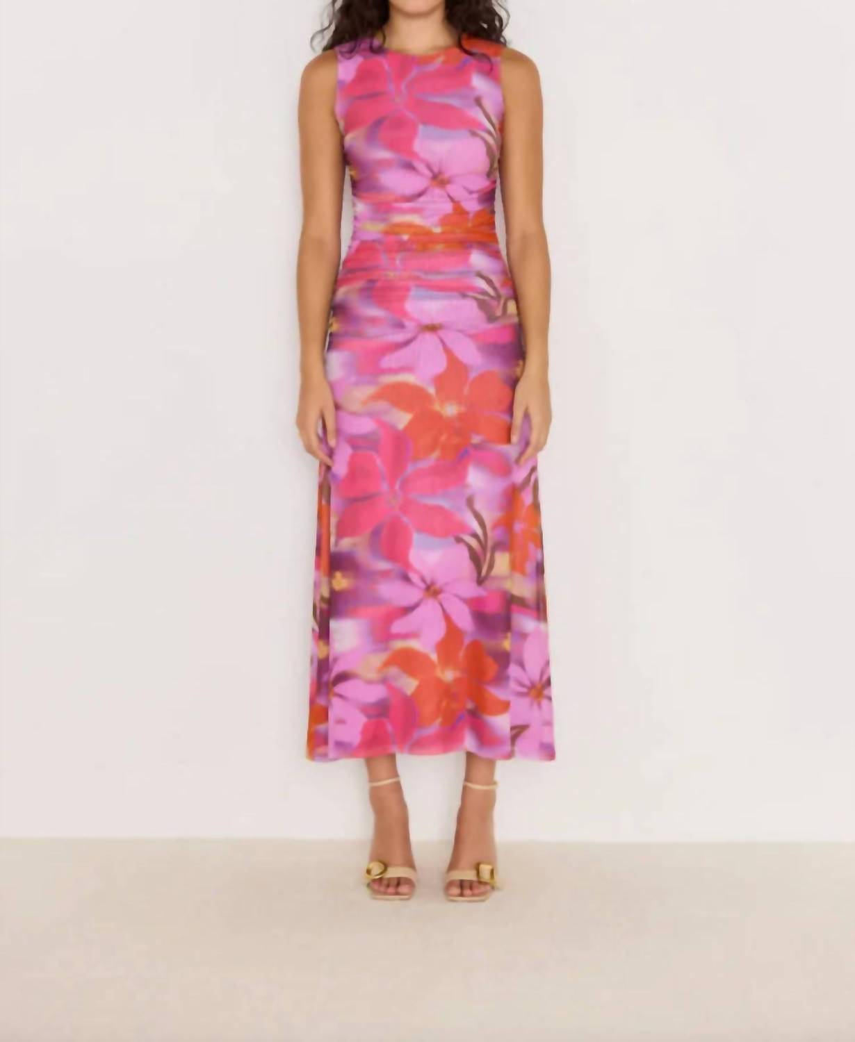 Just add slides or mules and you are good to go. Step out in style with the Sierra Mesh Midi Dress by MINKPINK, a must-have for women aiming to make a statement this summer. This sleeveless dress features an abstract floral pattern in an A-line silhouette, complete with a classic crewneck and eye-catching twist front design with ruched sides. Crafted from comfortable cotton blend fabric, it’s perfect for any holiday party. Care is a breeze with machine wash instructions, ensuring you can enjoy your maximalist look again and again.