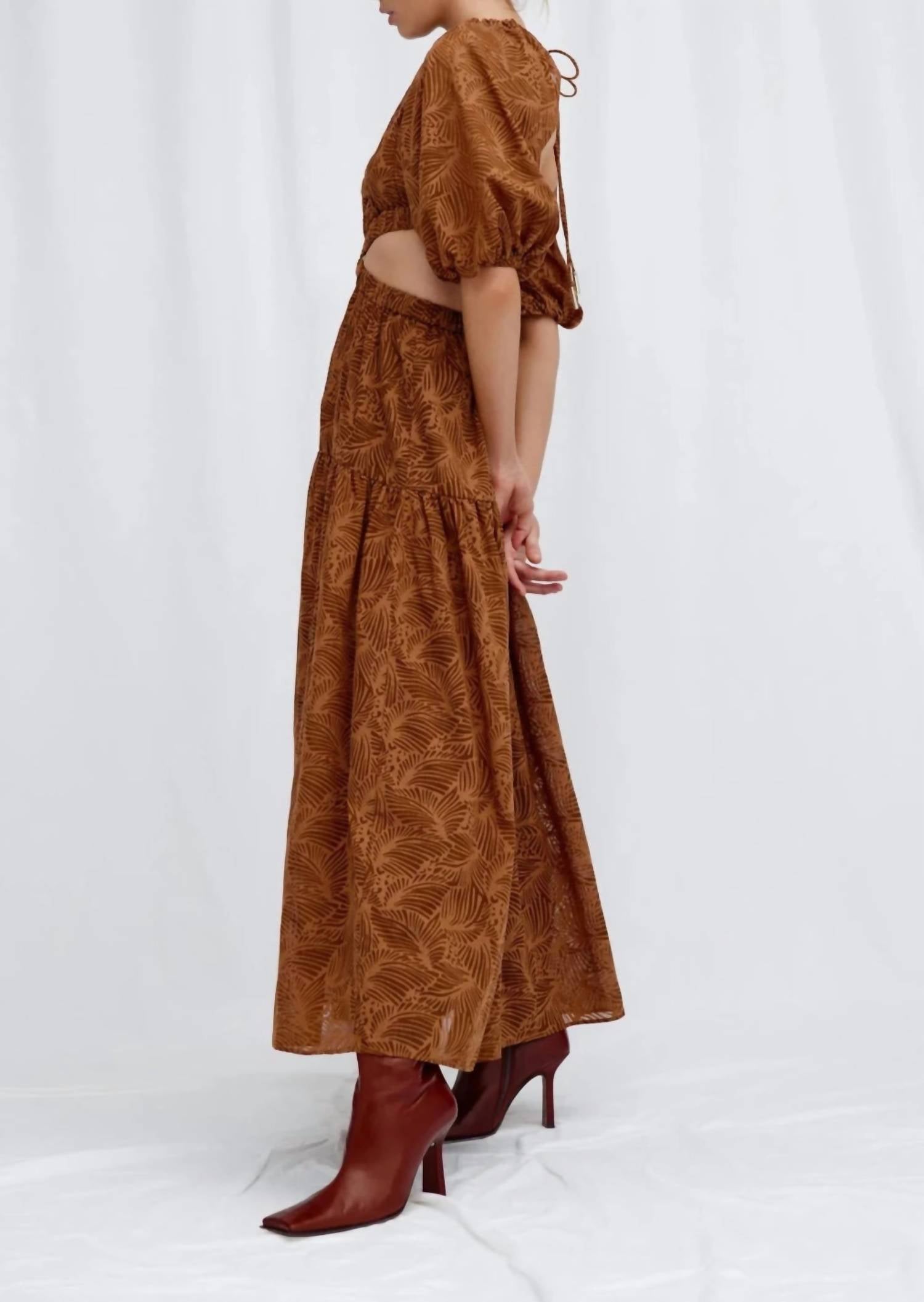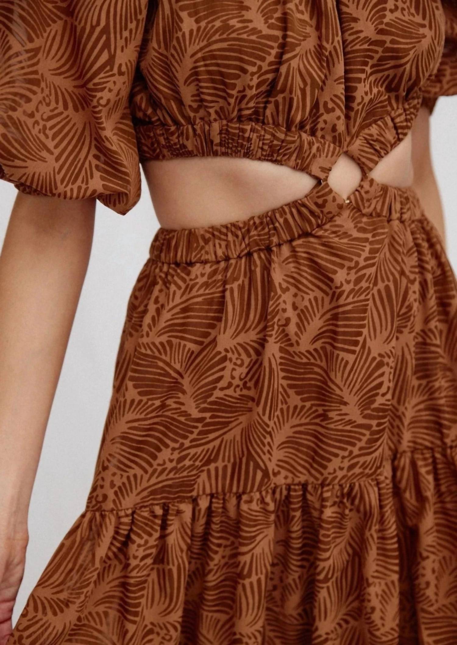 Casual, comfortable and cute! The dress that you'll be reaching for all season long. Introducing the Skyler Dress by Significant Other, an elegant summer staple in a captivating Coconut hue. This short-sleeve A-line dress features floral patterns, a mockneck, and unique cut-out details at the waist, giving it a distinctive flair. Made from a luxurious cotton blend, it includes 65% cotton and 3% polyester with a 100% cotton lining for comfort. Closure: Button closure. For care, wash and dry turned inside out with a cold delicate machine wash. Model is wearing a size 8AU/4US.