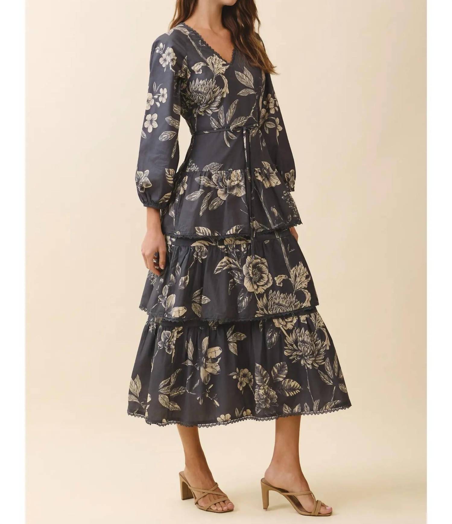 The perfect length dress does exist. Elevate your holiday party style with the Lace Detail Floral Midi Dress by TCEC, a stunning piece in elegant grey. Designed from 100% cotton, this dress features a graceful V-neckline with delicate lace trim and three-quarter puff sleeves. The silhouette is defined by a self-tie waist and a voluminous tiered skirt, finished with a concealed zip closure for a sleek fit. Perfect for spring occasions, this dress adds a touch of timeless sophistication to your wardrobe.