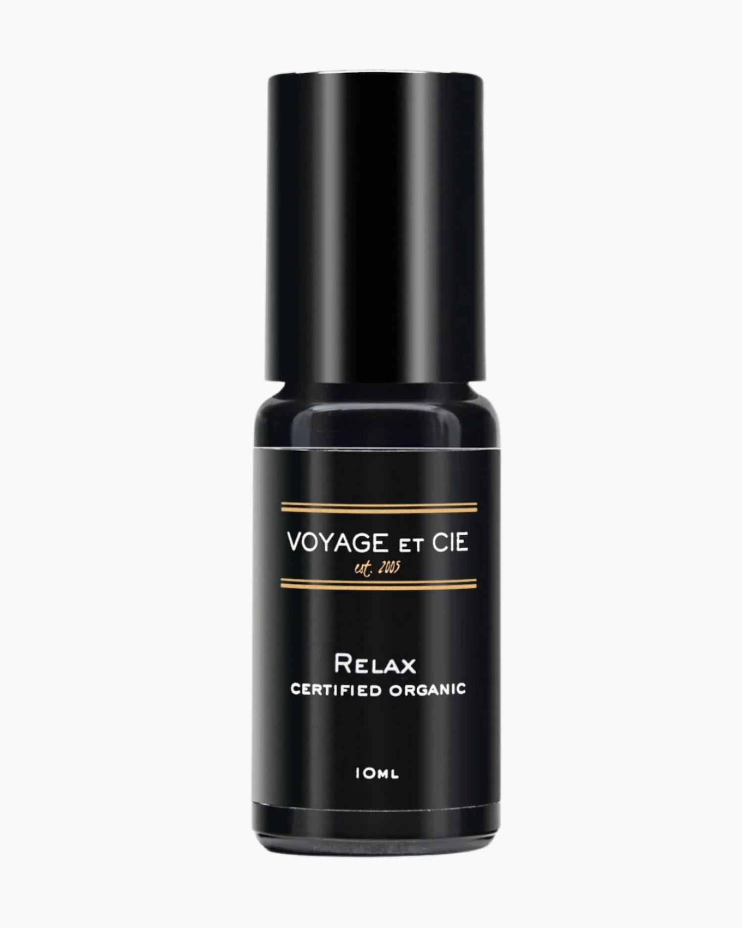 Experience tranquility with the Aromatherapy Roll-on by VOYAGE et CIE, designed to soothe your senses with its calming fragrance blend. Housed in a portable 10ml violet glass bottle with a convenient roller ball applicator, this essential oil blend features chamomile, rose otto, and ylang ylang harmonized with grounding vetiver. Ideal for enhancing your relaxation routine with a touch of elegance and ease, it can be a staple at your bedside or in your bag.