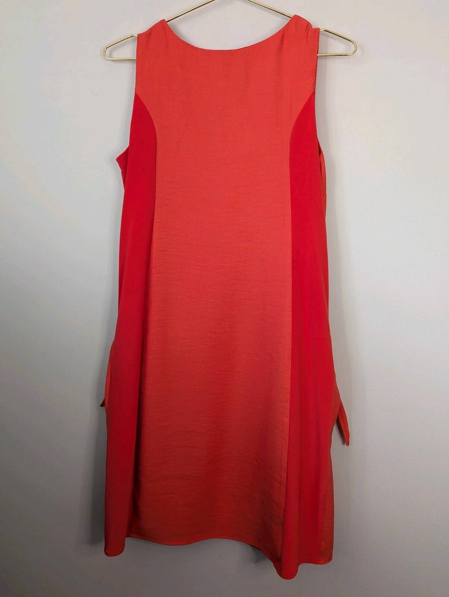 A short and breezy dress for those warmer days. Meet the Sleeveless Woven Dress by Frank Lyman, a coral beauty perfect for spring travel and workwear chic. This charming dress, crafted in Canada, features a relaxed shift silhouette made from 89% Rayon and 11% Polyester. The knee-length design includes a stylish V-neckline and convenient tie knot pocket details. The dress ensures ease with a pull-on closure and requires hand washing and line drying for care.