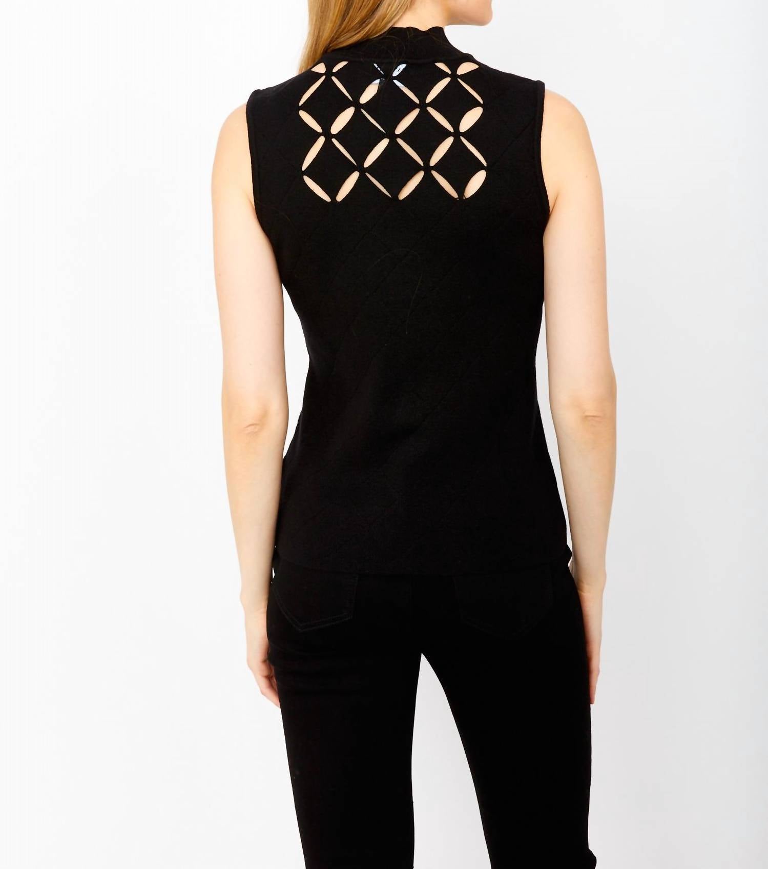 Layer under your favorite sweater or wear tucked into jeans for a perfectly polished winter look. Introducing the High Neck Sleeveless Top by Frank Lyman, a sophisticated addition to your fall wardrobe in timeless black. This fitted hip-length pullover features a chic turtleneck and stylish cut-outs for a modern touch. Made from 100% Polyester, it offers comfort and versatility, ideal for casual or night outings. Closure: Pull-on. Care: Hand wash. Length: Approximately 26" (size 12).