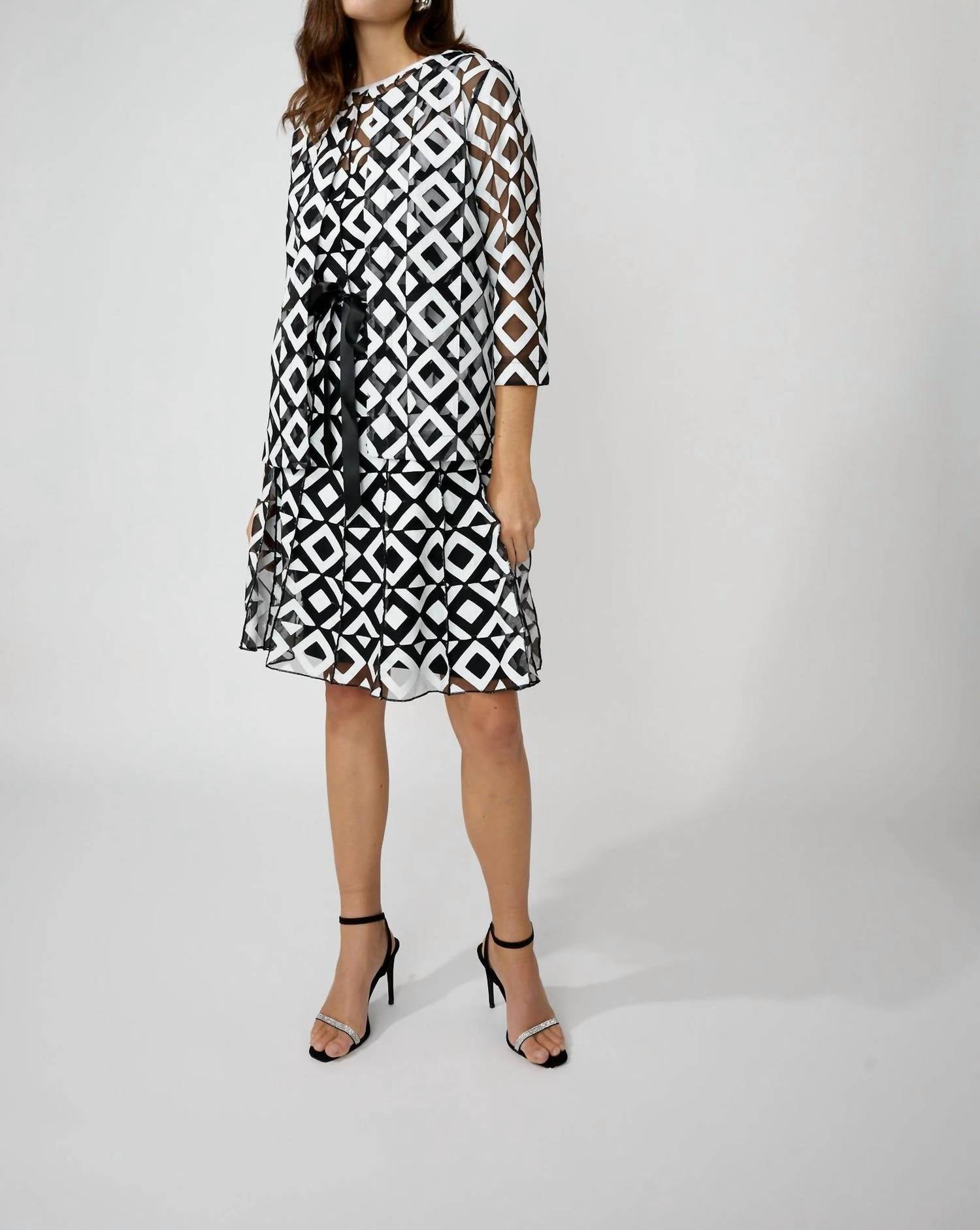 The kind of easy and flattering dress you'll be reaching for all season long. Elevate your vacation wardrobe with the Women's Jacket by Frank Lyman, boasting a Boho Chic aesthetic in a striking black and white pattern. Designed with three-quarter sleeves and a classic crewneck, this patterned jacket effortlessly combines style and comfort. Closure: Pull-on. Ideal for spring outings, it's a chic choice for the fashion-forward traveler.