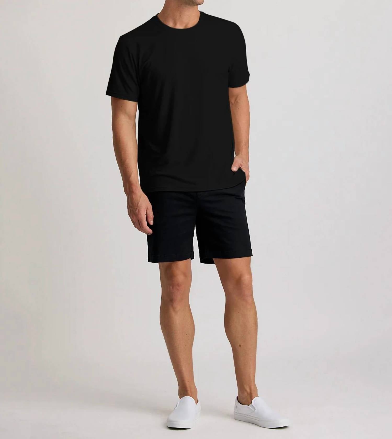 Introducing the Elevate Lightweight Tee by Free Fly, a high-performance short sleeve option designed for men's outdoor adventures. This tee is crafted from a durable, ultra-lightweight polyester blend, ensuring breathability and quick-drying capabilities with drirelease® technology. It features a streamlined crewneck design in solid black, complete with HeiQ® Fresh odor control and a UPF 25 rating for sun protection. 81% Polyester 11% Lyocell 8% Spandex.
