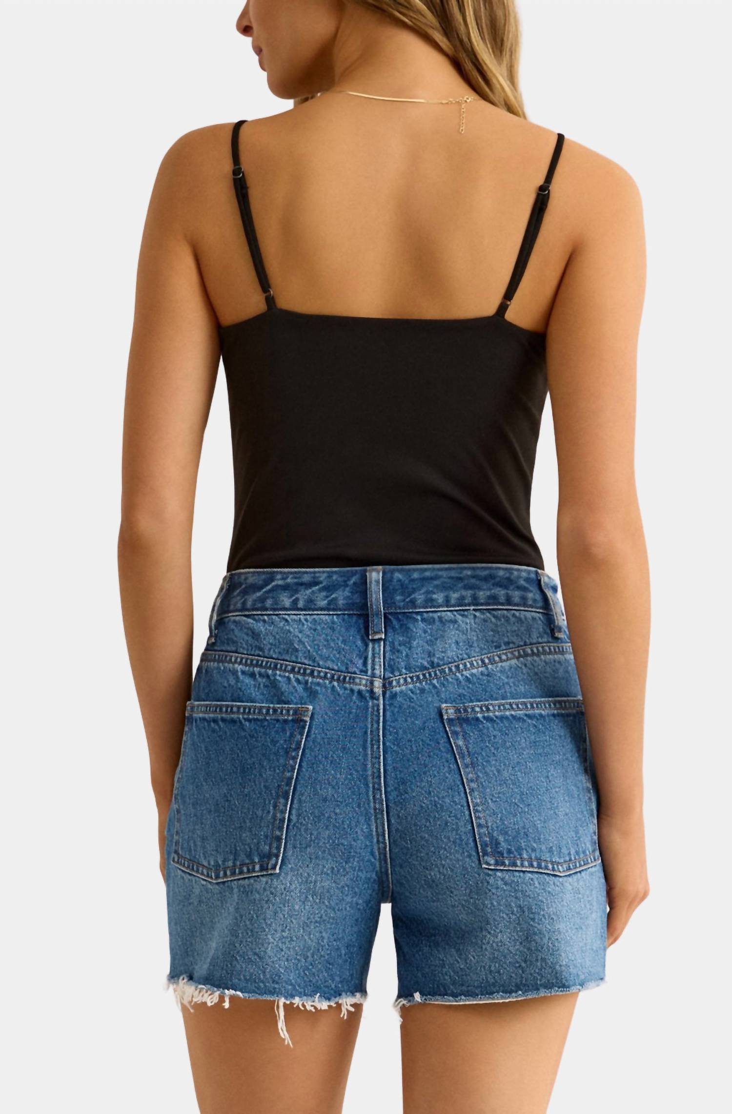 A bodysuit featuring a smooth finish, adjustable straps, scoop neckline, and a double layer for added comfort. Thong bodysuit with a fitted design and a length of 23 inches from shoulder to snaps. 80% Nylon 20% Spandex.