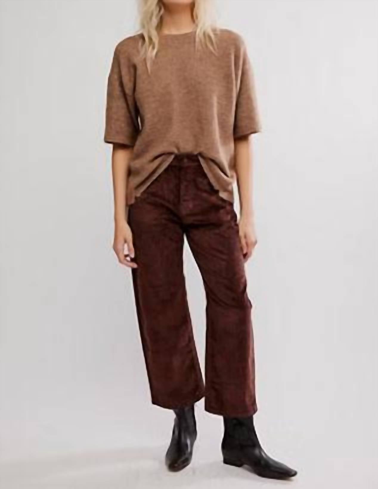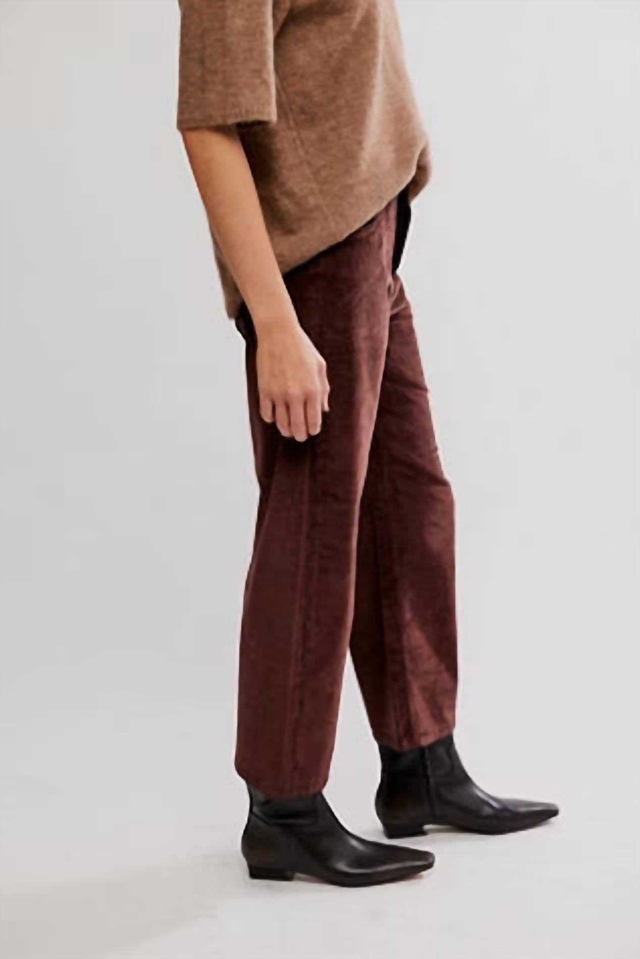 Pair these straight leg jeans with flats, sandals or even heels! You can't go wrong. Discover the Deep Trance Dropped Corduroy Denim by Free People, a quintessential streetwear piece in a rich Shaved Chocolate hue. Crafted with a soft, stretch cotton blend consisting of 76% Cotton, 22% Modal, and 2% Elastane, these jeans offer a relaxed fit with a low-rise, dropped barrel style. The design features a button-fly closure and a classic five-pocket style, hitting at an ankle-length inseam of 25 inches, making it a versatile addition to your summer wardrobe. Care instructions advise machine washing cold and tumble drying for easy maintenance, perfect for back-to-school occasions or 4th of July celebrations.