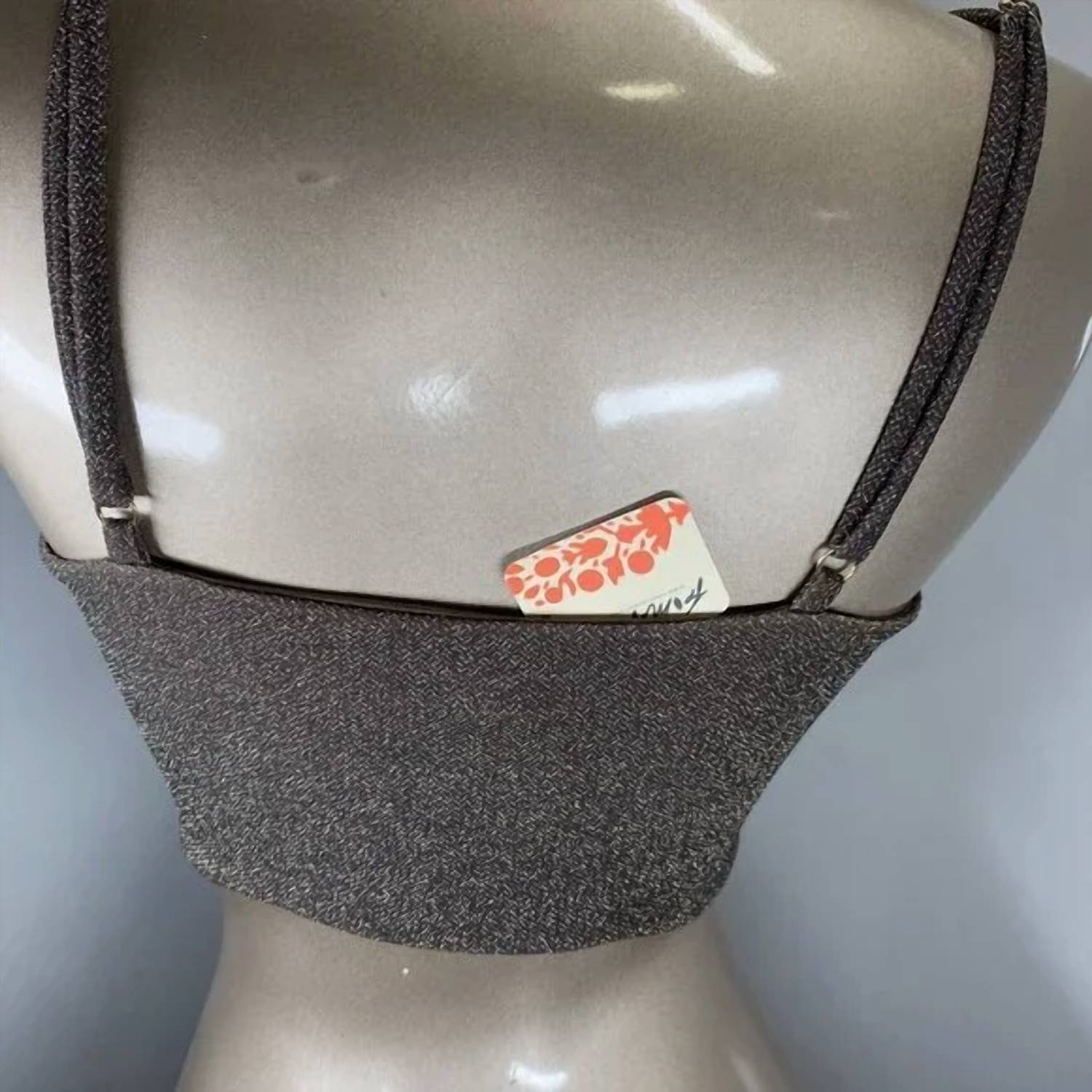 This cute and flattering swimsuit is perfect for making a splash at the pool, lounging on sun-kissed beaches, and staying stylish throughout the upcoming summer season. Meet the Kenzi Twist Bikini Top by Free People, a perfect blend of sporty and special with its twist detail at the bust. This pull-on swim top showcases adjustable shoulder straps in a textured, sparkly fabric, composed of 71% Nylon, 24% Metallic, and 5% Spandex. Made in the USA, this brown bralette is ideal for a minimalist summer beach day. Care instructions include machine wash cold gentle or hand wash cold.