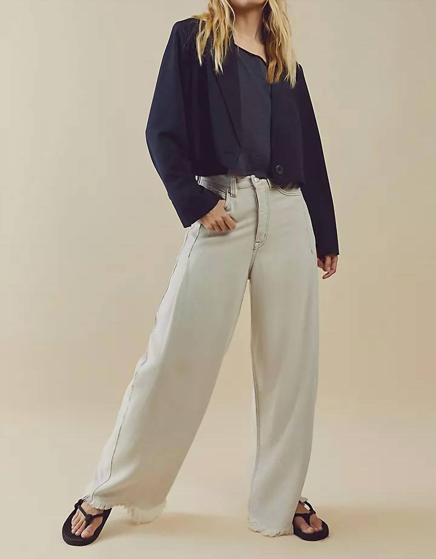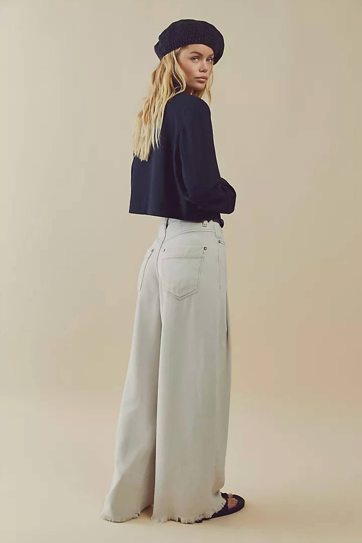 A flattering silhouette that's suprisingly versatile. From the Free People collection, the Old West Slouchy Jean in Mushroom is a standout piece. With a high-rise waist and relaxed fit, they feature an ultra-wide leg style, perfect for creating a laid-back, minimalist look. The solid pattern, raw bottom hem, and five-pocket style are complemented by a button closure, offering a chic yet casual aesthetic. Ideal for summer vacations, these jeans are easy to care for with machine wash and tumble dry instructions included.