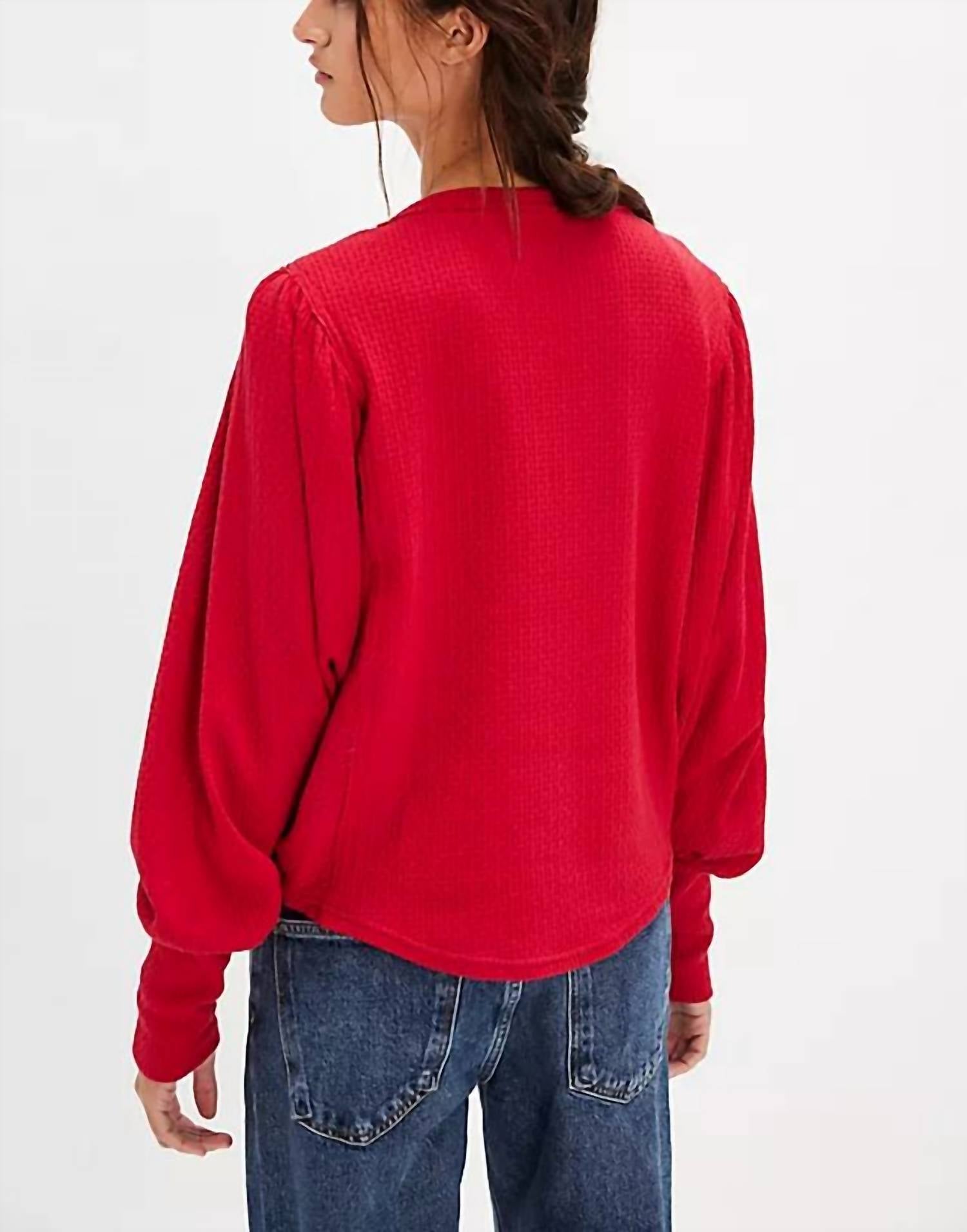 The ultimate go-to sweater, expertly crafted to provide the perfect combination of warmth and style. Its classic design and soft fabric make it a must-have addition to your wardrobe. Introducing the Quinn Knit Thermal Sweater by Free People, perfectly crafted for the Fall season. This women’s piece comes in a vibrant Salsa color and features long voluminous dolman balloon sleeves for a modern twist. Made from a thermal cotton blend with a henley neckline, it offers an oversized fit with fitted cuffs and no pockets for a minimalist look. Closure: Button closure.