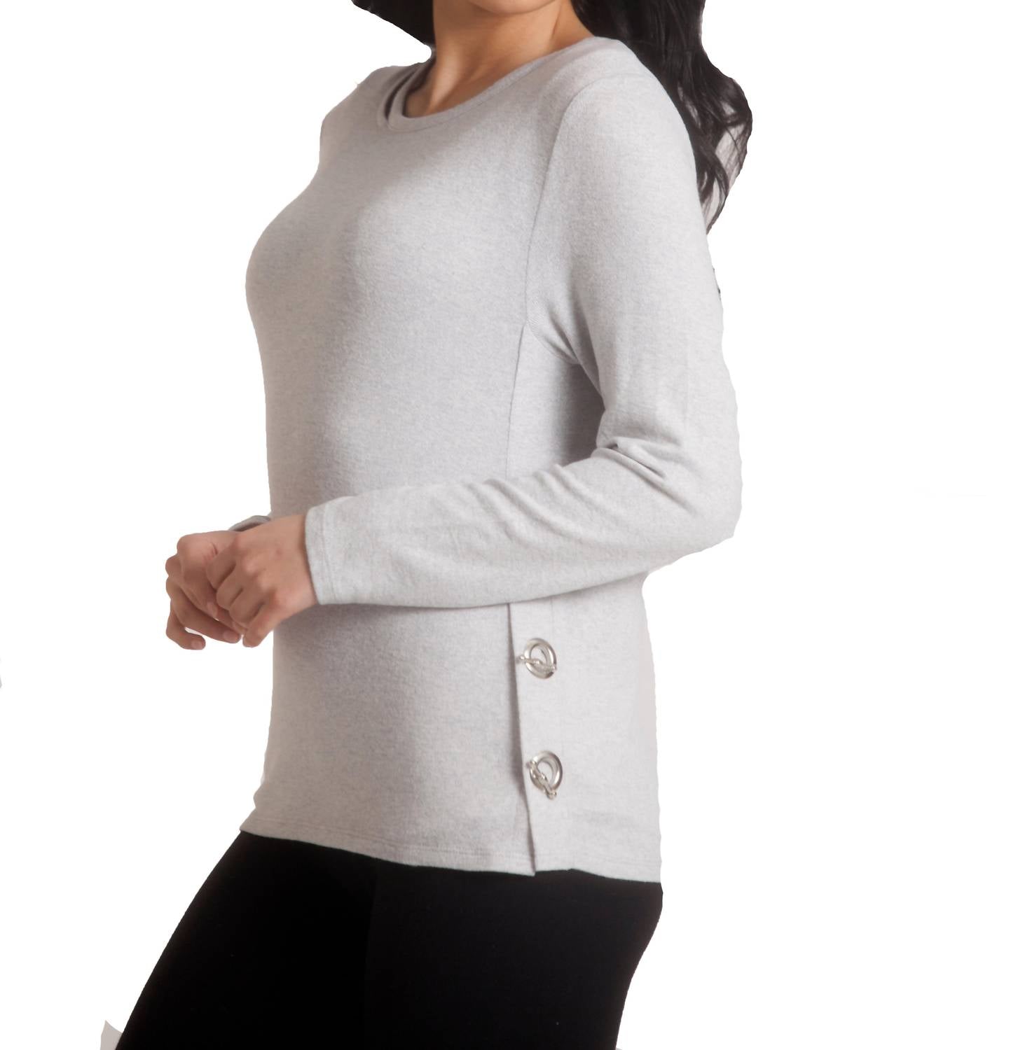 The perfect long sleeve tee that goes with just about anything. Introducing the Supersoft Grommet Top by French Kyss, a minimalist essential in a stunning Frost hue for your vacation wardrobe. With its elegant long sleeves and classic crewneck, this solid top features a flattering hip-length cut, ensuring an effortless and chic look. Made from a blend of 79% Viscose, 18% Polyester, and 3% Elastane, it offers comfort without compromising on style. This imported, button-close piece requires delicate hand washing or dry cleaning for optimal care.
