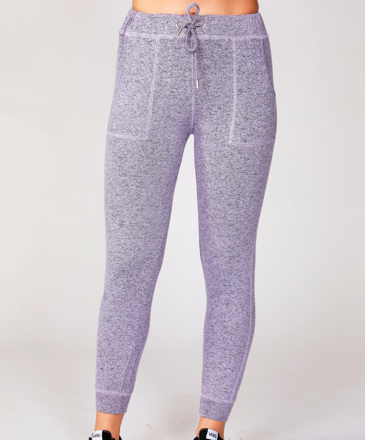 The perfect pant for running around town and looking cool while doing it. Discover ultimate comfort with the Women's Melange Joggers by French Kyss, designed in a soothing lilac hue. Crafted from a luxurious blend of viscose, polyester, and elastane, these joggers offer a high-rise fit and skinny leg style, making them ideal for both leisure and workouts. Imported and designed to hit at the ankles, the joggers provide practical functionality with pockets for added convenience. Care for them with a delicate hand wash or opt for dry cleaning to maintain their pristine condition.