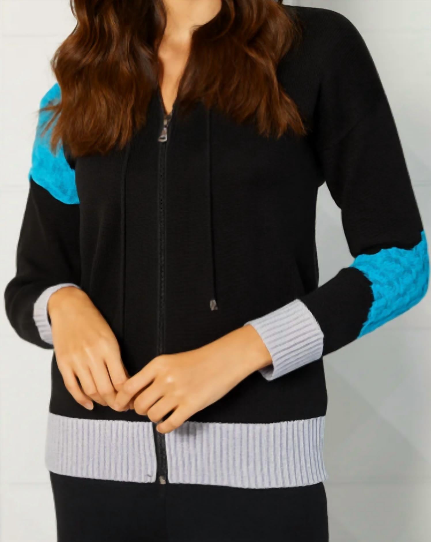 A classic fit that works just as good buttoned as it does left open. Introducing the French Kyss Hoodie, a must-have in athleisure style designed for active women. This long-sleeve zip-up cardigan is crafted from a cotton blend, offering comfort with a solid pattern and a hooded neckline. The garment hits at the hips, is imported, and ensures a snug fit ideal for workouts or casual outings. Care instructions suggest delicate hand washing or a choice to dry clean, maintaining its quality for fall fitness endeavors.