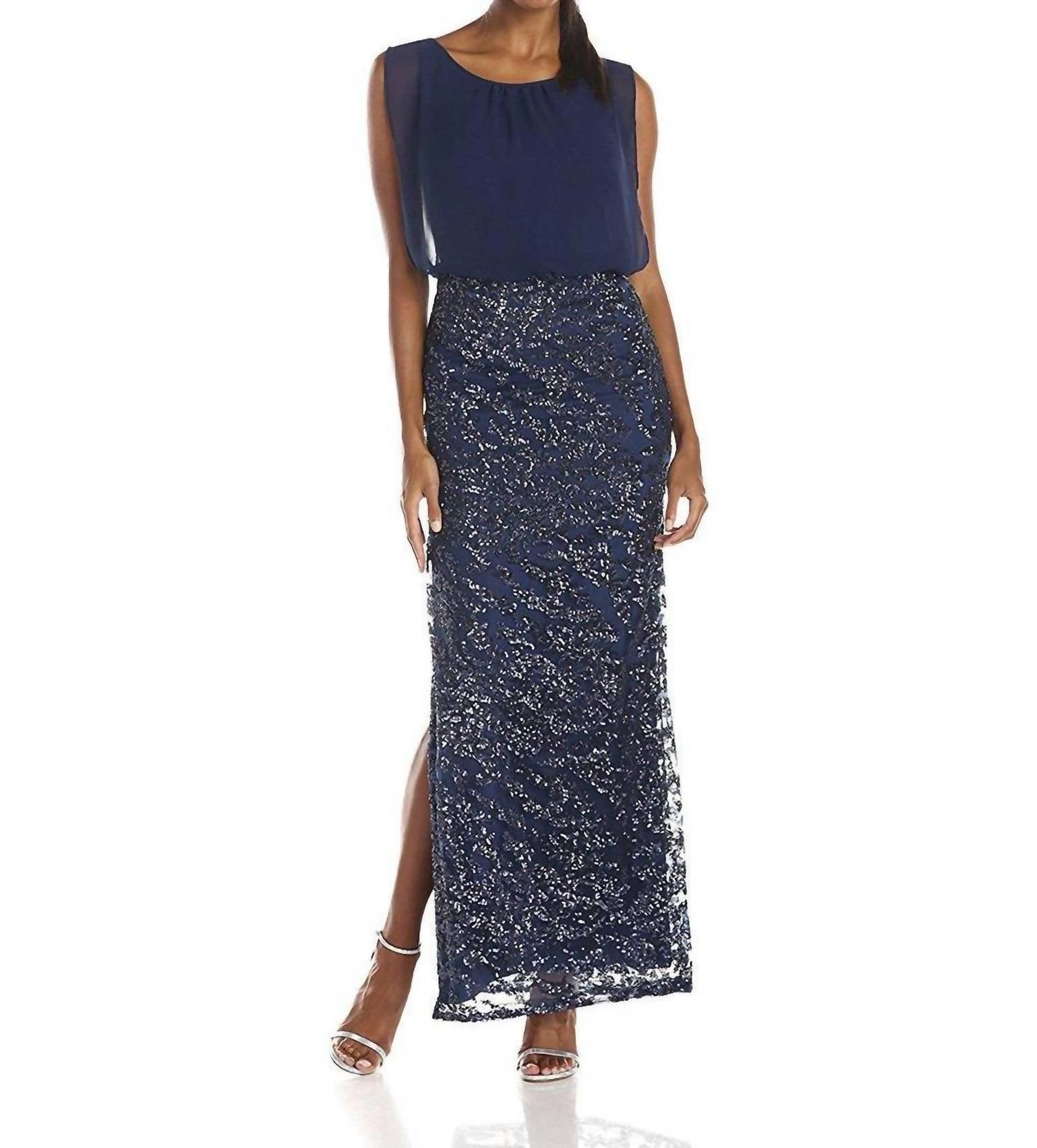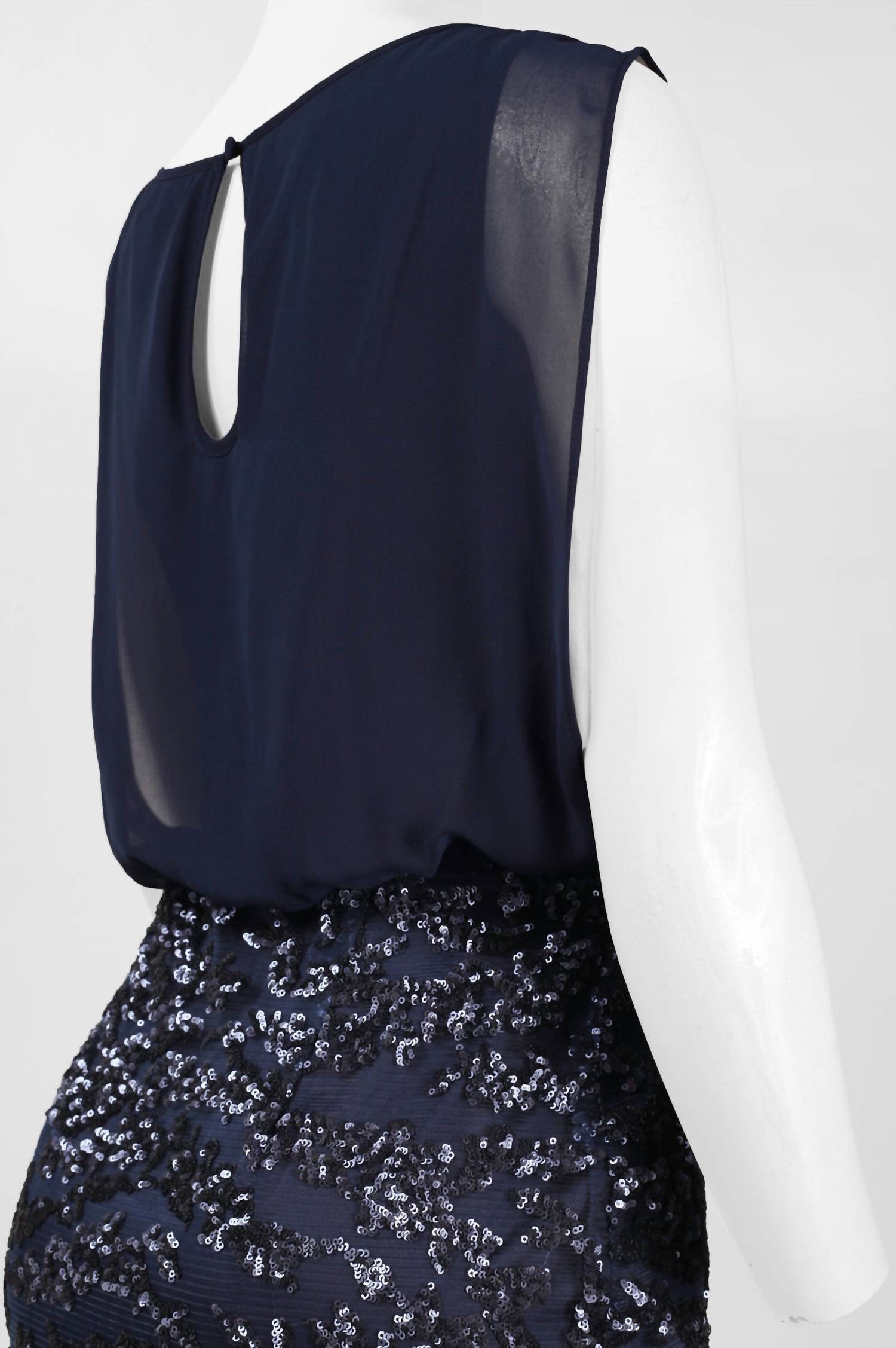 A maxi dress that is just as cute as it is comfortable. Step into elegance with the AIDAN MATTOX Overlay Sequined Long Evening Dress, a stunning choice for any event. This sleeveless, A-line silhouette dress combines luxurious chiffon and mesh materials with a sophisticated navy hue. Crafted from 100% polyester with a lining of 96% polyester and 4% elastane, it features a scoop neckline and keyhole back for a touch of allure. Closure is secured with buttons. Ideal for women seeking a textured, glamorous look.
