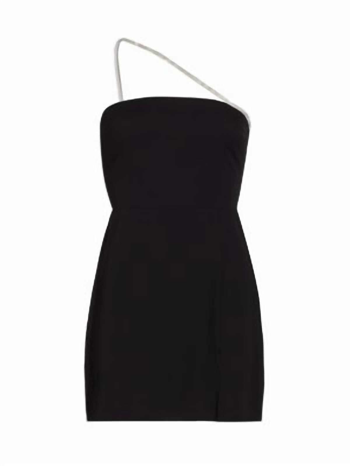 The perfect mini dress for those warmer months. Step out in style with the Dream Diamante Strap Cocktail Dress by Amanda Uprichard, an exquisite choice for any evening event. This strapless mini dress in solid black is crafted from 100% polyester and features a striking crystal-embellished rope detail at the bandeau neck, accentuated by a sleek sheath silhouette and a chic front slit. With a back zip closure, this 33-inch garment offers an easy fit, imported for quality. Care for this minimalist piece by dry cleaning to maintain its lustrous appearance, perfect for a New Year's Eve celebration. Model is 5'10" tall and is wearing a US size Small.