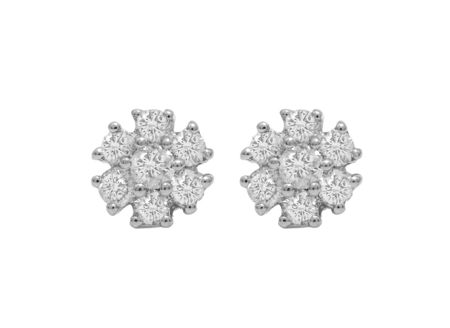 eye-catching earrings for every occasion. Elevate your elegance with the 0.75 Cts Diamond Flower Stud Earrings by Diana M Jewels, crafted from luxurious 14k white gold. These fine earrings showcase a natural, round brilliant diamond with a total weight of 0.75 carats in a prong setting. Featuring a secure post clasp, they are ideal for those with an April birthstone or anyone who appreciates sophisticated sparkle. Perfectly timeless, these earrings make a stunning addition to any jewelry collection. SKU: ERFA4251 WG