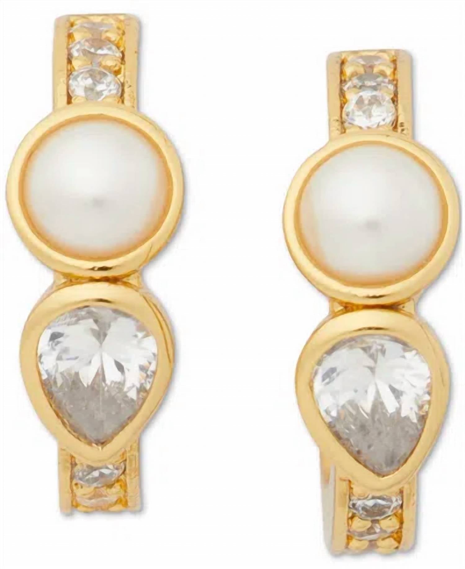 Easy and elegant earrings to complement any outfit. Elevate your accessories with the Kate Spade Women's Bubbly Bezel Earrings in a sophisticated gold and white combination. These exquisite fashion earrings are crafted from gold-tone brass, adorned with cubic zirconia, and finished with a glass pearl, showcasing a 0.55" diameter. Featuring a secure post back closure, these imported earrings from the Bubbly Bezel collection are perfect for any occasion.