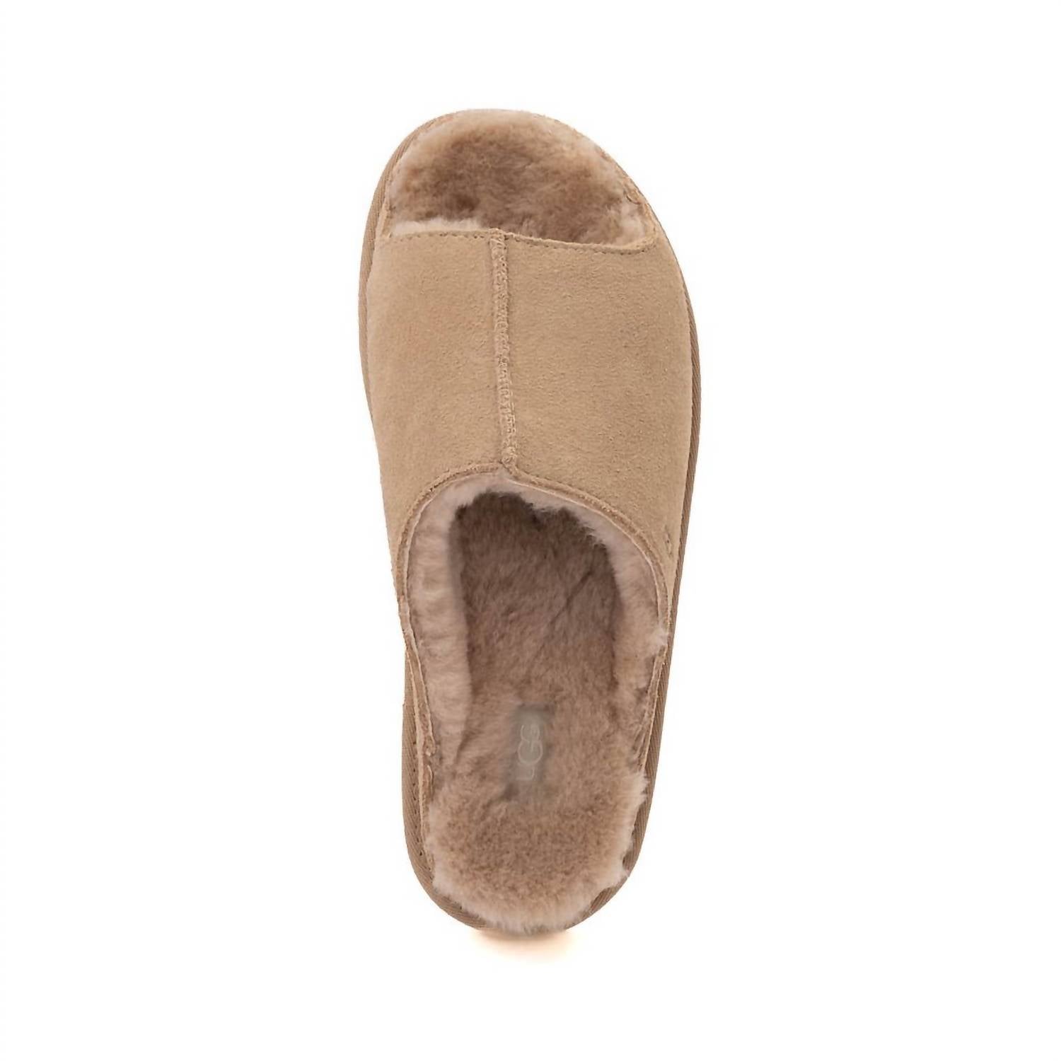 So comfy it's like you're walking on clouds. Just ask our Greenport Slide: you can have your slippers in the outdoor summertime, too. A lush addition to your indoor-outdoor collection, the Greenport Slide delivers The Feel of UGG® you love in a lighter silhouette. Immerse yourself in the naturally moisture-wicking sheepskin lining and insole, or add a pair of socks for extra coziness. From our Classic Boot bottom to our Twin Seam detailing on top, this is how UGG® does sunshine.
