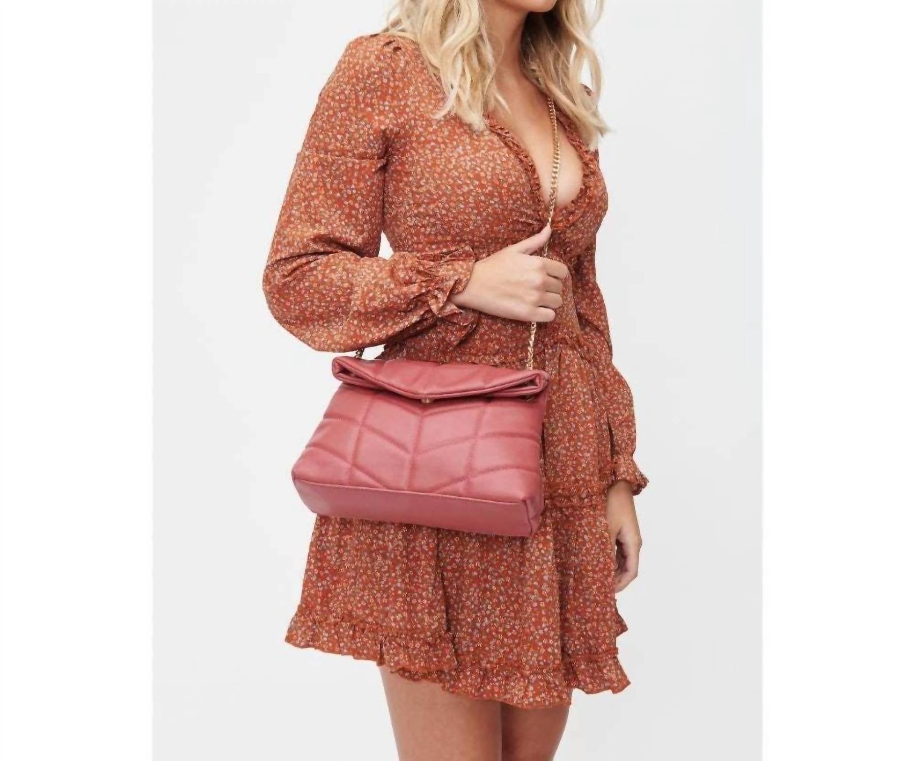 A casual and cute take on everyone's favorite crossbody bag. Elevate your accessory game with the Women's Delfina Crossbody Bag by Urban Expressions, available in a chic blush hue. Crafted from vegan leather, this bag showcases a luxurious quilted pattern complemented by gold hardware. The snap closure ensures security, while the adjustable chain strap and additional shoulder strap provide versatile carrying options. The thoughtfully designed interior features a fabric lining and a zip pocket for easy organization, and the dimensions are 10.3 x 3.1 x 6.8 inches (26.2 x 7.9 x 17.3 cm).
