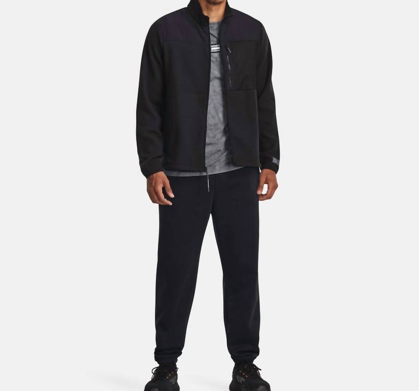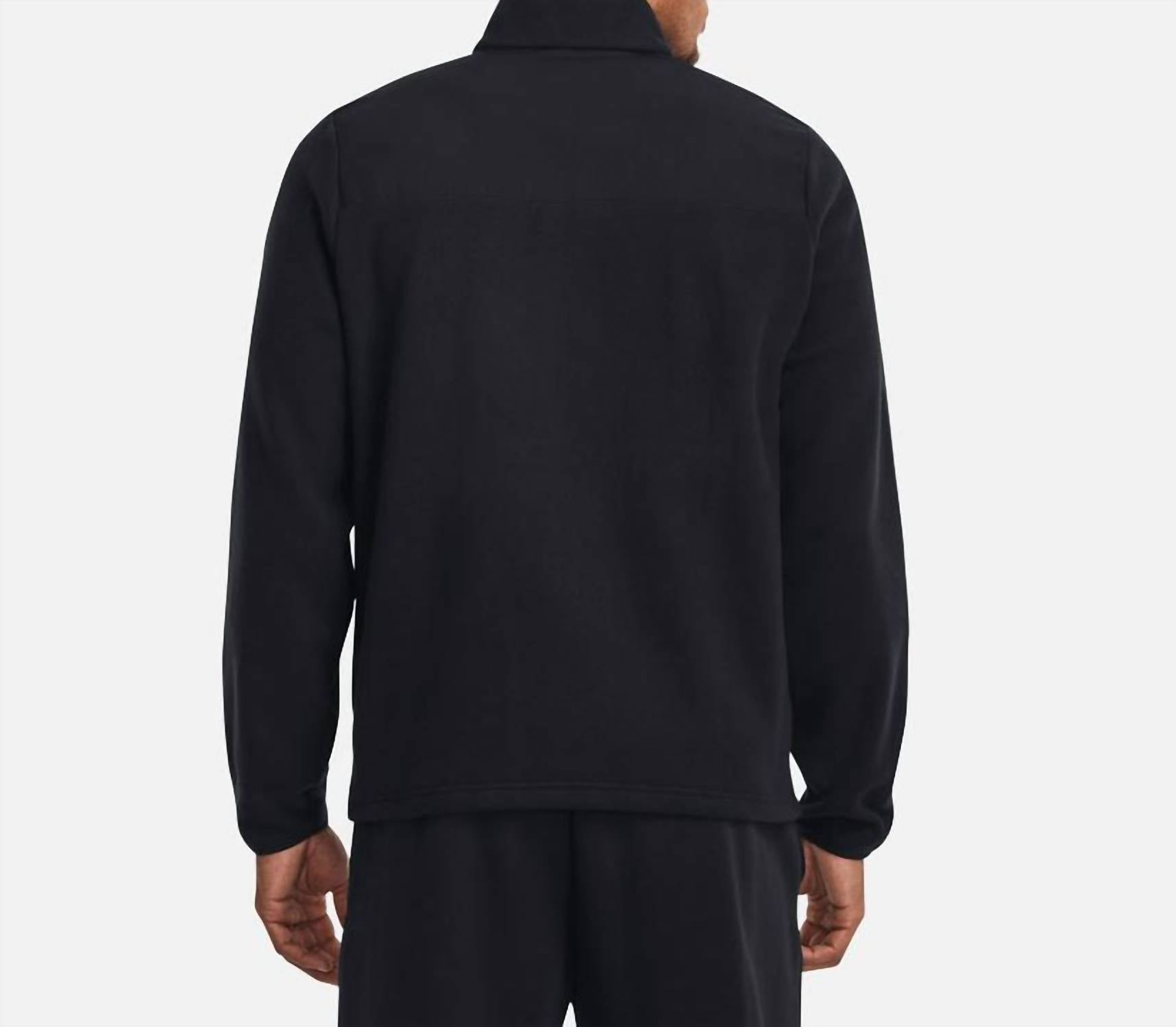 A lightweight and ultra-soft microfleece jacket with a water-resistant woven overlay on the shoulders for added durability. Features secure zip hand and chest pockets with a mesh overlay, an internal locker loop for easy hanging, and binding at the cuffs and collar. Made with at least 90% recycled polyester in the main body fabric.