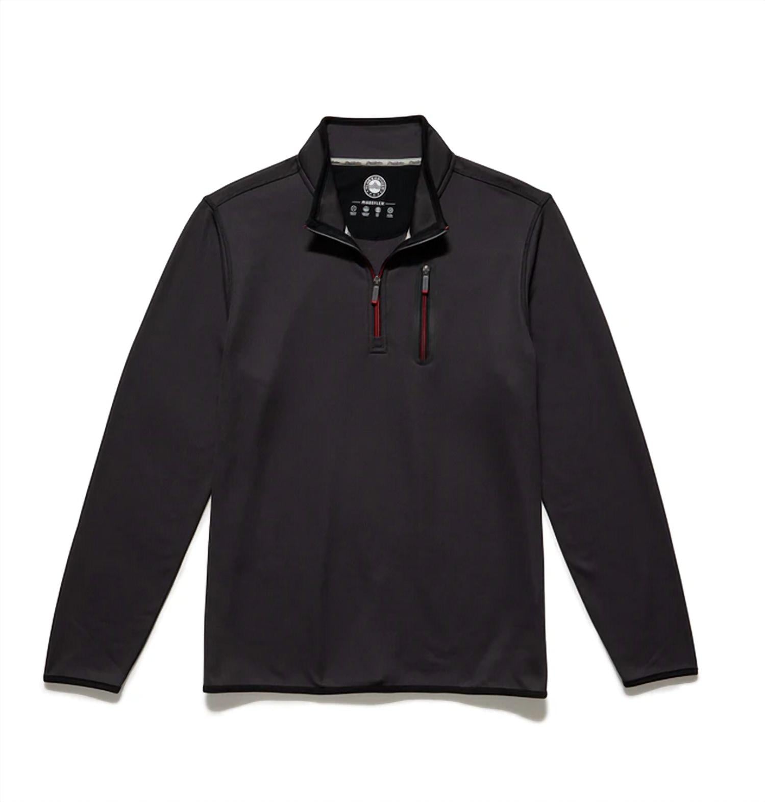 Discover the Flags & Anthem Helm Fleece 1/4 Zip Mock Neck Pullover Jacket, a stylish choice for colder days. This charcoal jacket boasts long sleeves and is crafted entirely from 100% polyester, ensuring warmth without extra weight. Designed with a standing mock neck collar and a convenient ¼-length zipper from chest to chin for ease of wear, it comes with a zip chest pocket for practicality. Made in an athletic fit with a 29” medium length, it is easily maintained with machine washing.
