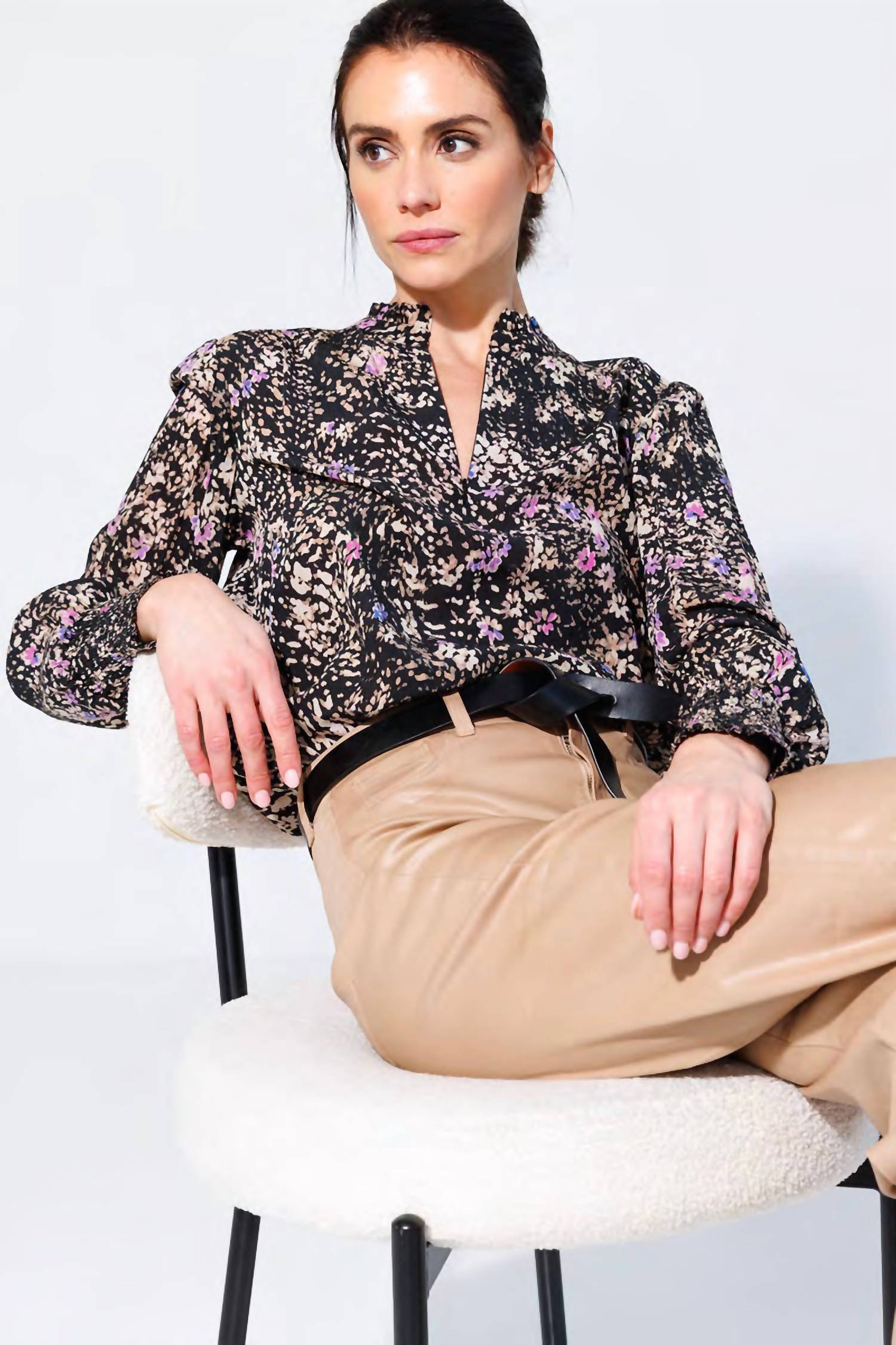 A timeless blouse that will never go out of style. Elevate your vacation wardrobe with the Go Soft Spoken Blouse by Go by Go Silk, a maximalist design perfect for spring. This women's blouse showcases a striking natural floral pattern with long sleeves and a flattering V-neckline. Crafted from 100% silk for a luxurious feel, it features a zip closure for a seamless fit. Made to be imported, care for this piece with machine wash cold instructions.
