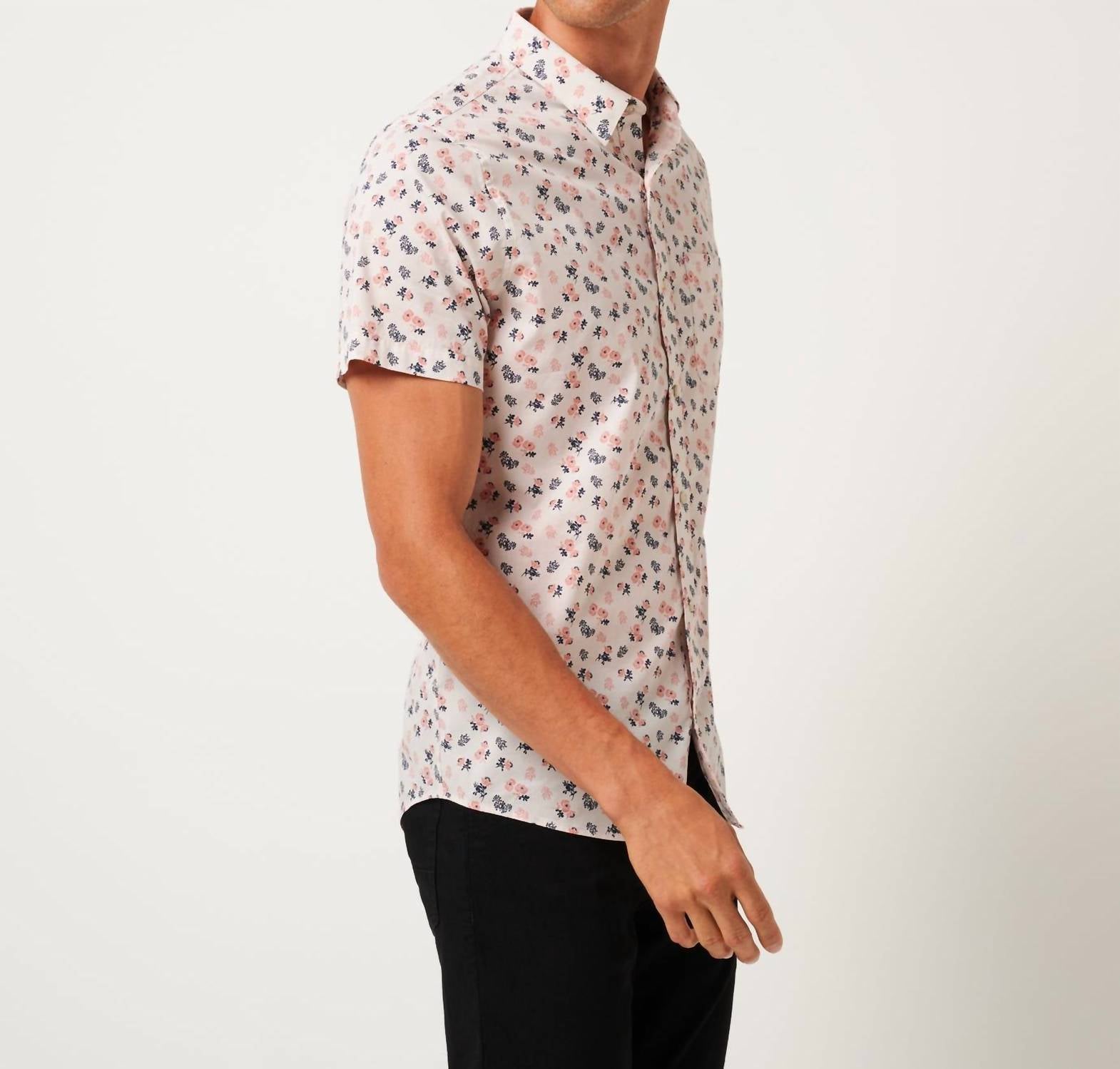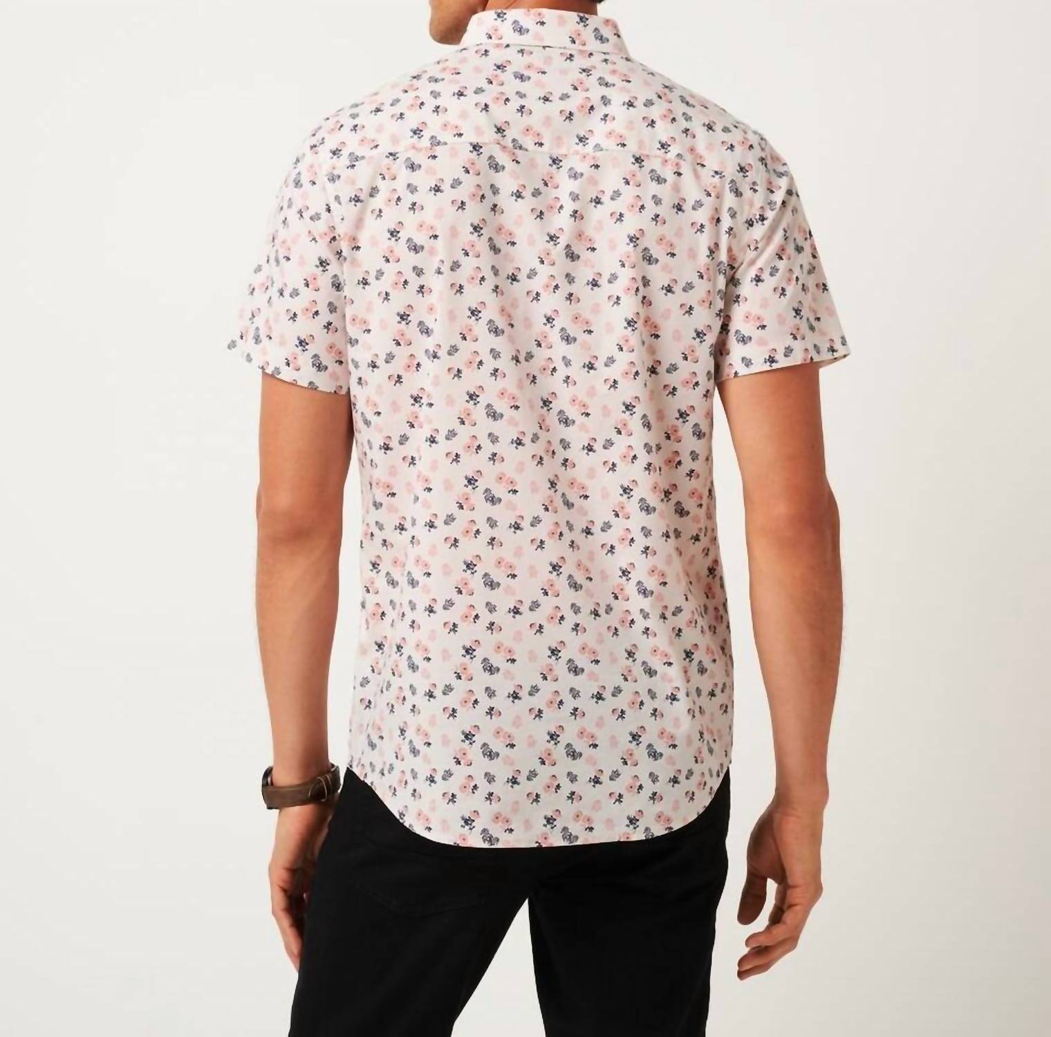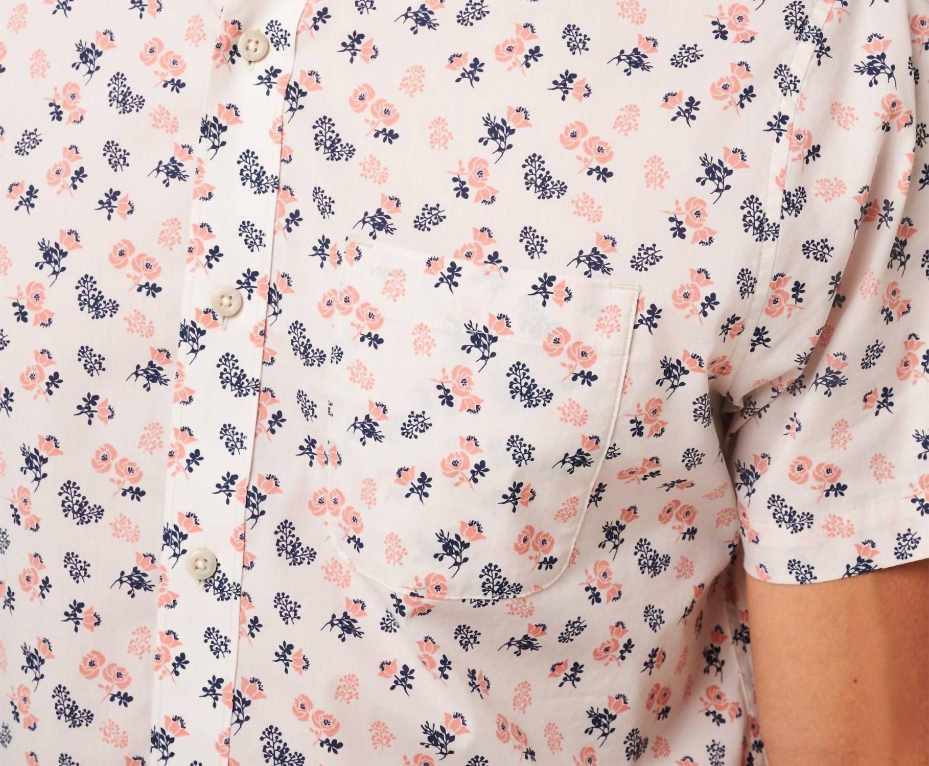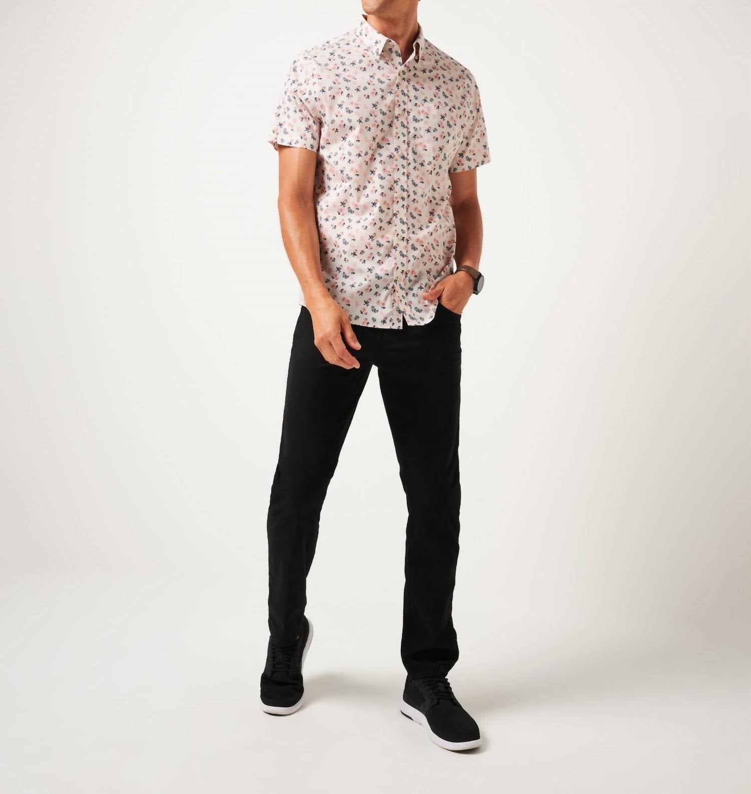 Introducing the Something New Button Up Shirt by TravisMathew, a must-have for stylish and effortless looks. This Moonbeam shirt features short sleeves and a striking floral pattern, perfect for spring wear. Made from high-quality Polyester, it includes a signature double-needle collar with built-in collar stays to maintain the perfect shape. Closure: Button closure. Care: Hand wash and lay flat to dry.