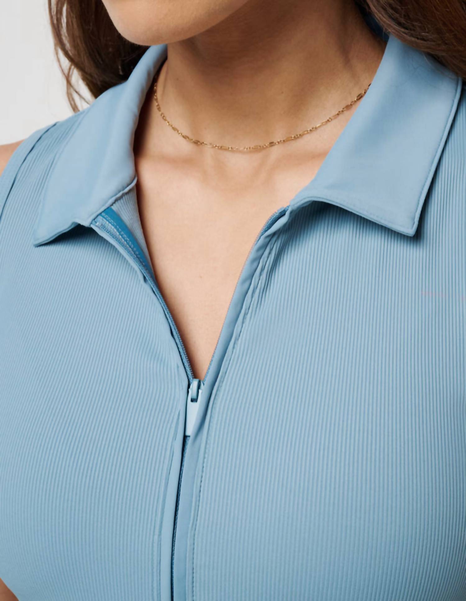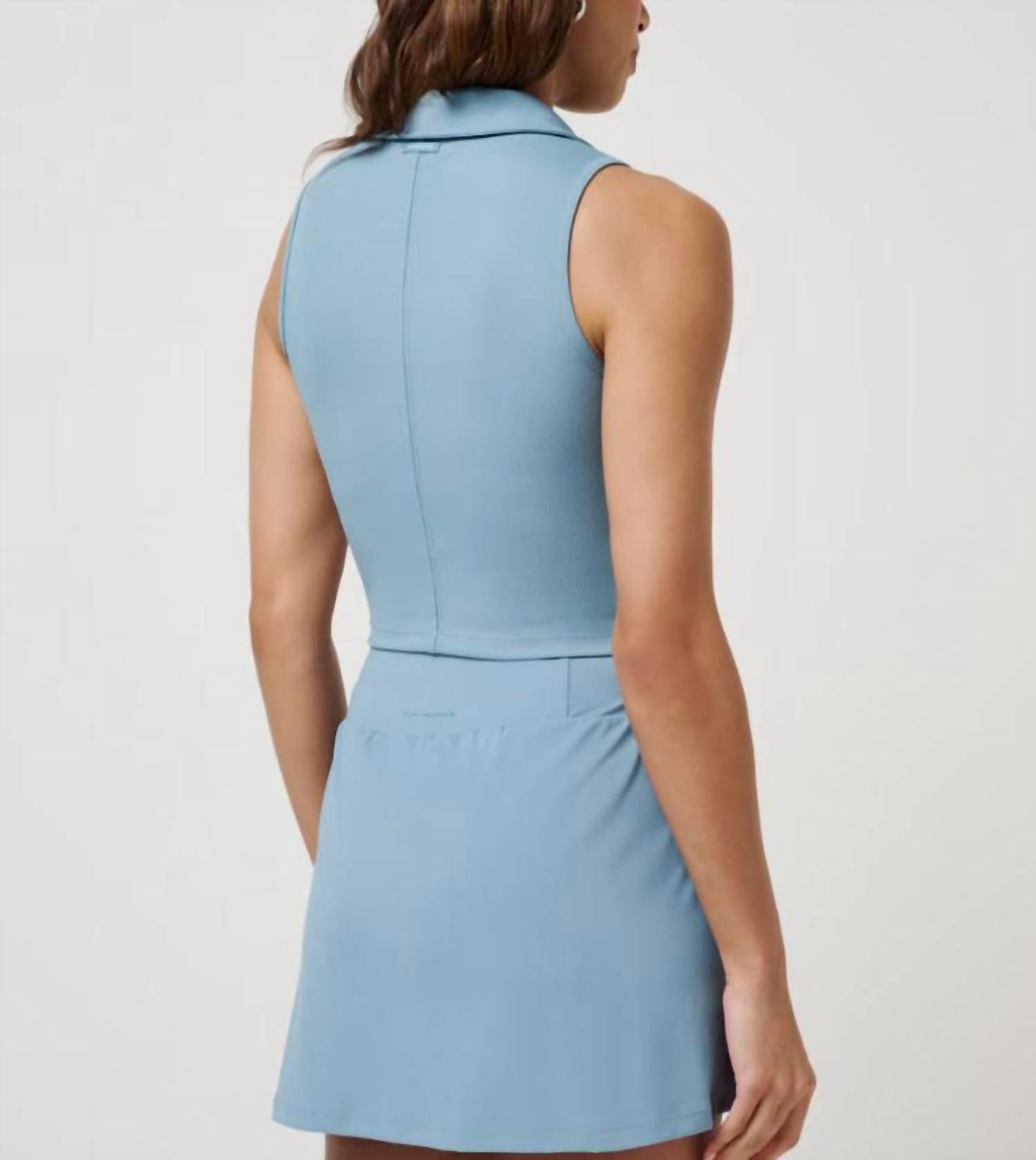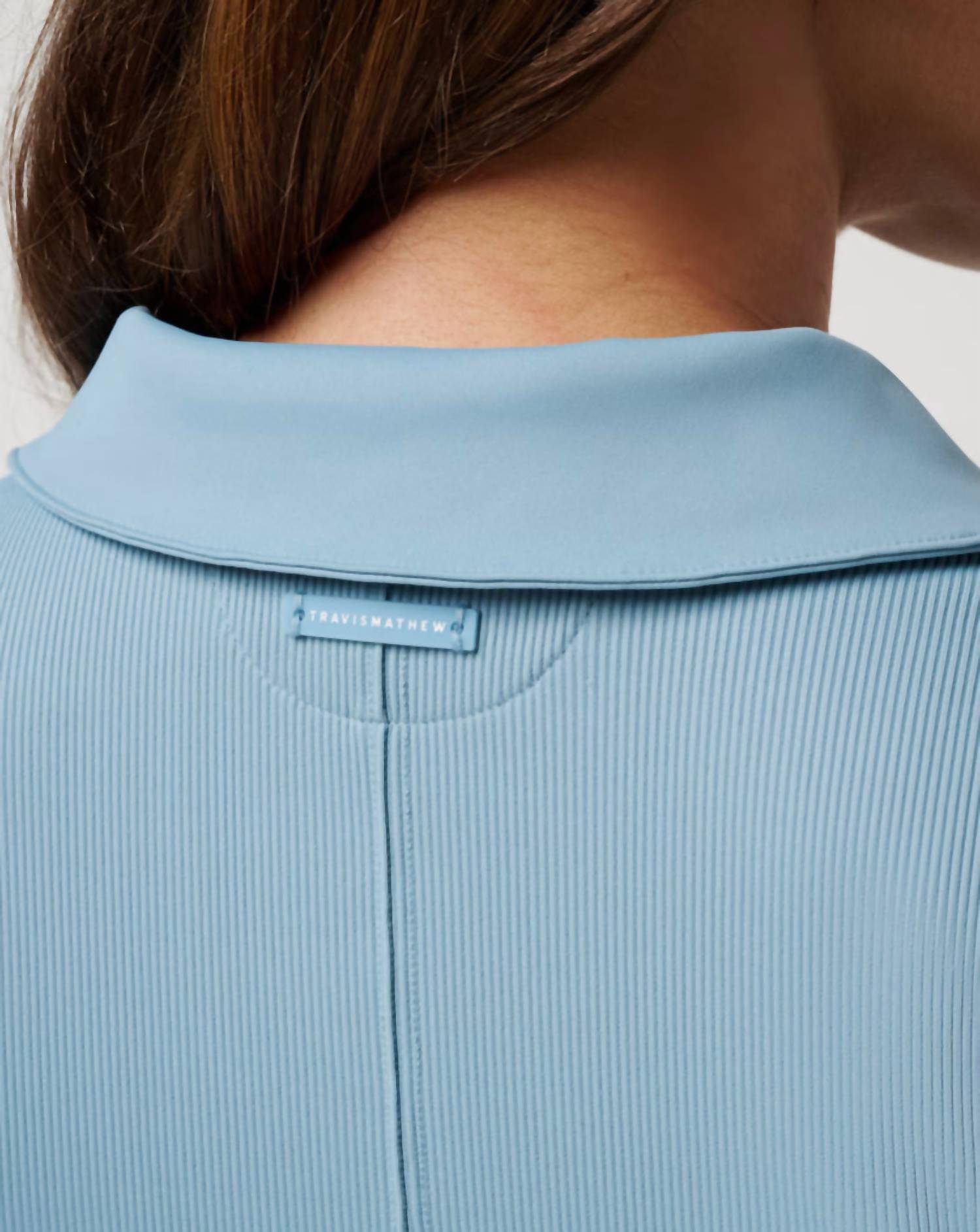This classic tank top is perfect for layering and cute enough to wear on its own. Elevate your wardrobe with the TravisMathew Midline Move Knit Polo in Smoke Blue, a must-have for your athletic yet stylish lifestyle. This short sleeve polo features a sleek, fitted style in a solid pattern with a collar neckline. Made for comfort, it includes a front full zip closure and hits at the waistband, hugging your figure with its MoveKnit Ribbed blend. Perfect for summer and versatile enough for game day or any casual outing, this polo is machine washable and should be line dried to maintain its form.