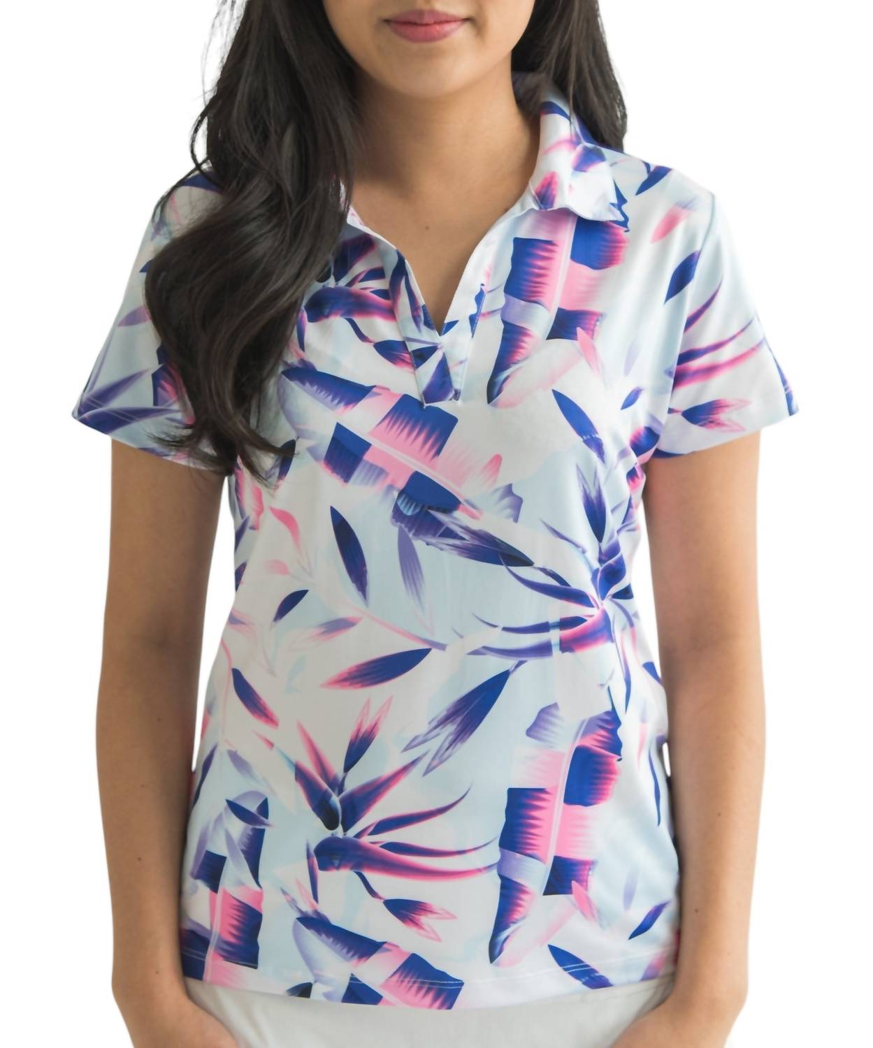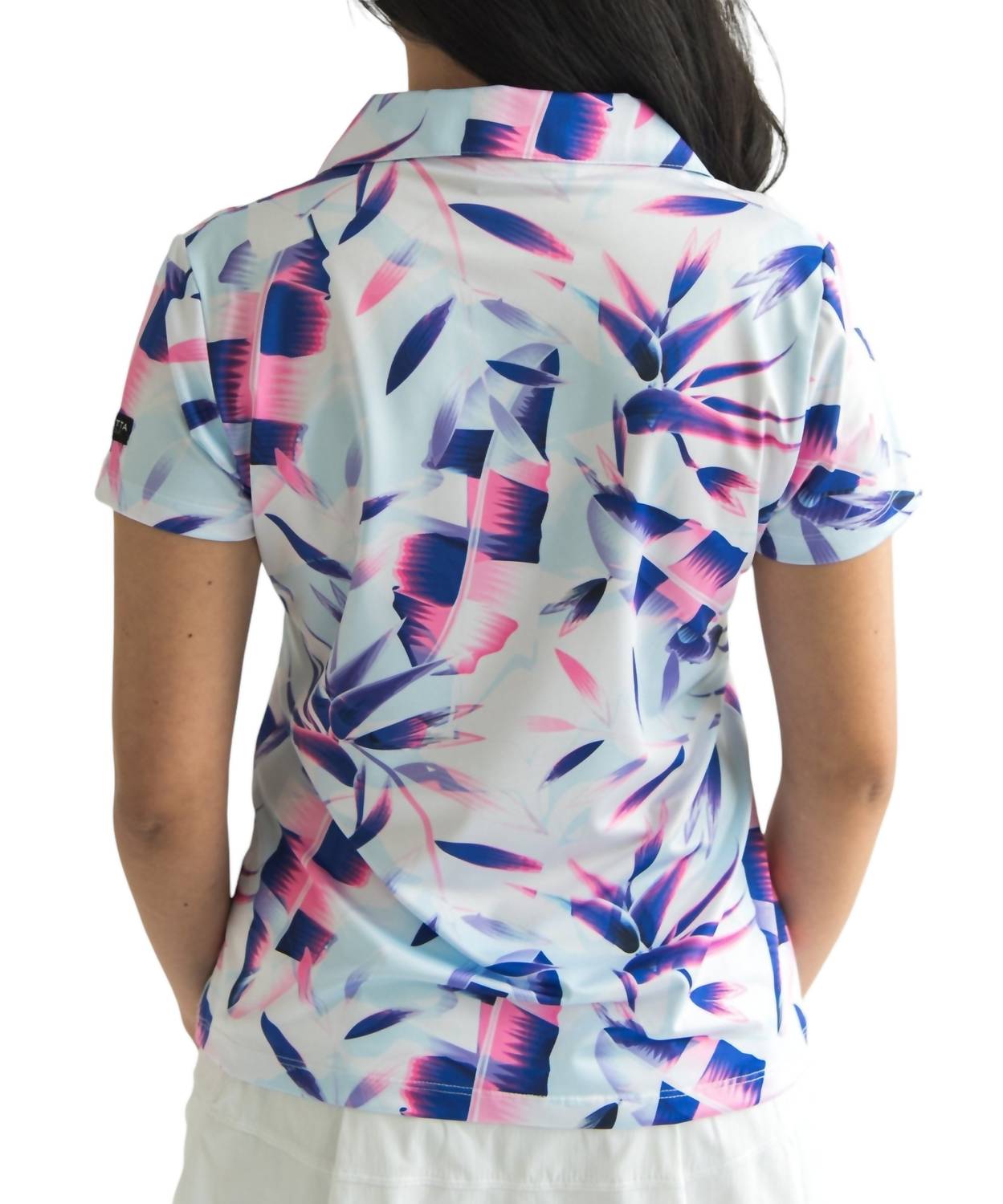 Designed for an athletic fit, it features a 4-way stretch and moisture-wicking properties to keep you comfortable on the course. It is 95% polyester and 5% spandex. Machine wash cold; tumble dry low.