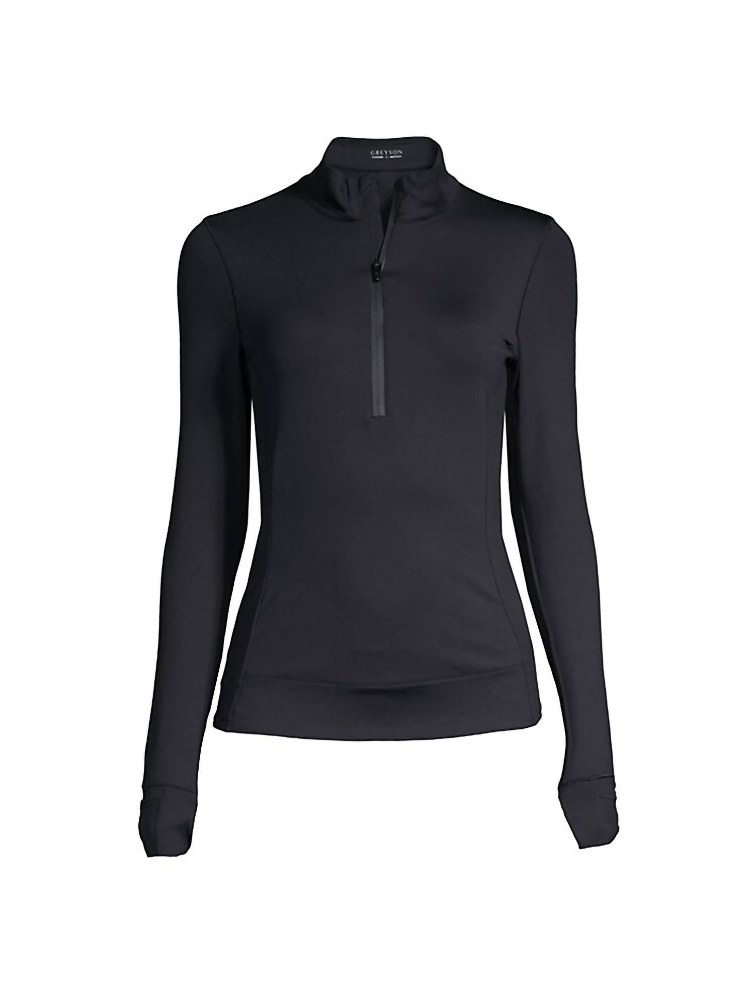 Cozy fabric, impeccable design - Meet the sweatshirt that you'll never want to take off. Introducing the Halley Quarter Zip by Greyson Clothiers, a premier choice for high-performance wear in the sophisticated Shepard shade. This stylish pullover features a funnel neck and long sleeves, ensuring comfort with its breathable, pill-resistant, and quick-drying fabric. Constructed from 86% nylon and 14% spandex, it measures approximately 21.75" from shoulder to hem. Closure: Quarter zip closure. Care: Machine wash and lay flat to dry, perfectly crafted for the active woman.