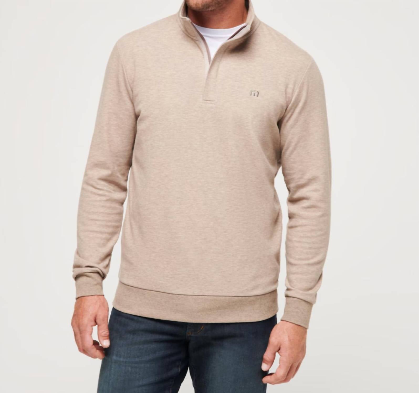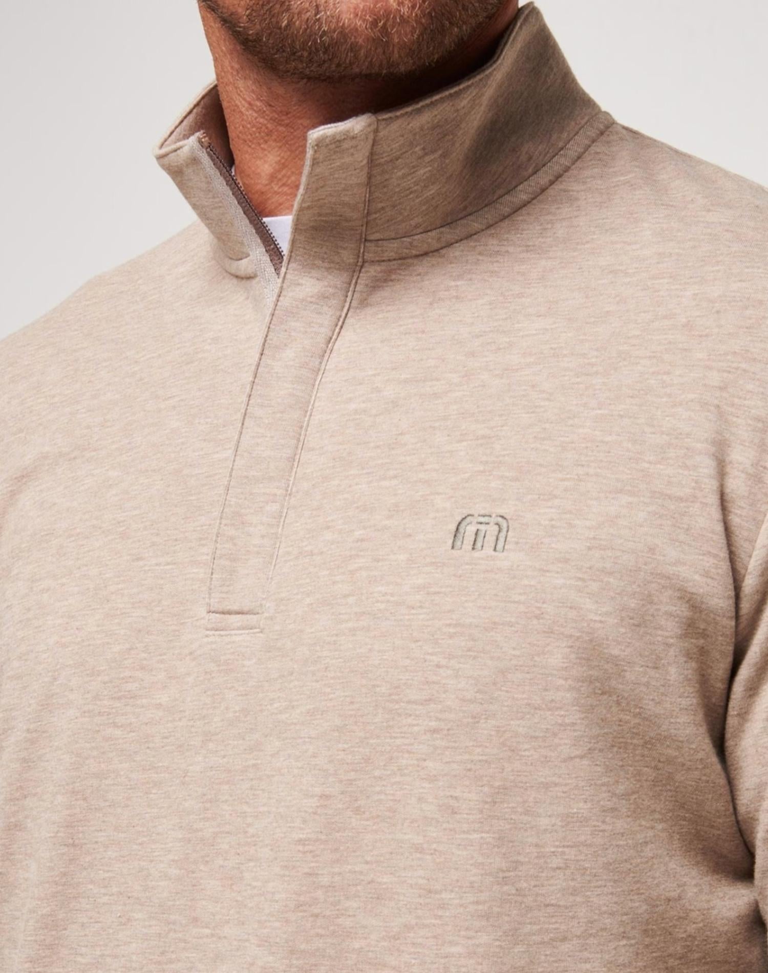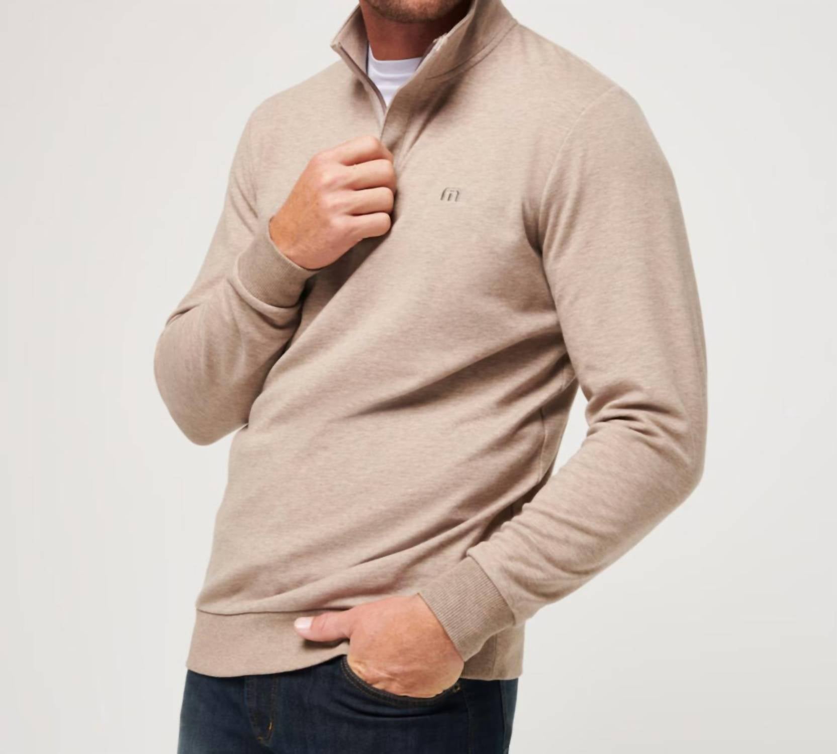 Stay warm and stylish in this versatile and effortlessly cool knitwear staple. Wear it alone or layered, it's the perfect sweater for the season and you'll wish you had it in every color. Discover the Cloud Quarter Zip 2.0 by TravisMathew, a hallmark of comfort in solid Portabella. This men's long-sleeve top, made from a blend of 62% Polyester, 33% Cotton, 5% Spandex , features a soft brushed fleece interior and a multidimensional heathered exterior for style. Crafted in a pull-on design, it's a part of the exclusive Cloud Collection. Care includes machine wash cold on a gentle cycle with like colors, use non-chlorine bleach, lay flat to dry, and cool iron if needed. Imported.