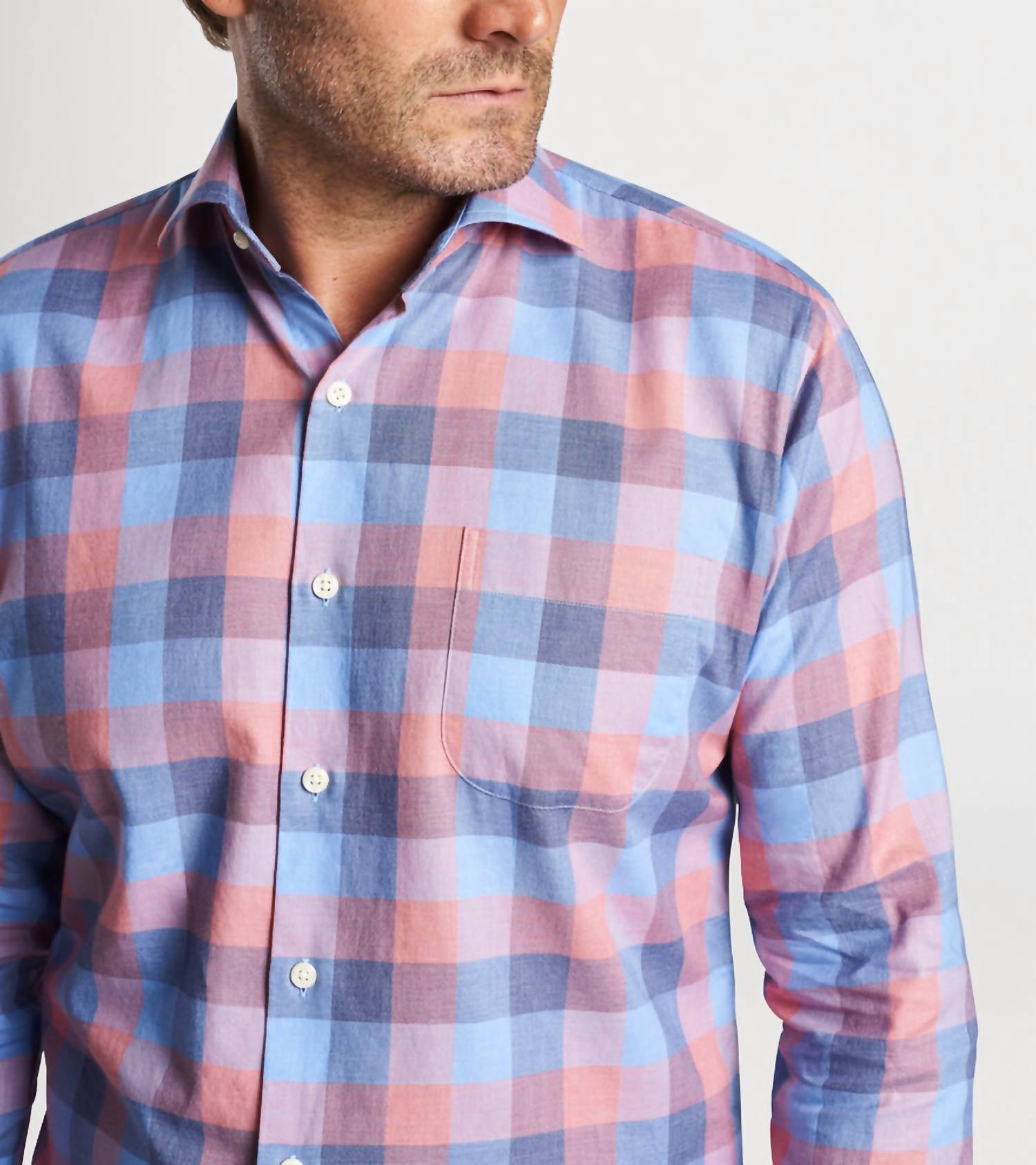 Introducing the Boothbay Summer Soft Cotton Sport Shirt by PETER MILLAR, a classic addition to any wardrobe in a multi-color plaid & check pattern. This shirt features long sleeves, crafted from 100% ultra-soft cotton twill, ensuring comfort and breathability. With a spread collar, French placket, and double-button barrel cuffs, it typifies casual elegance perfect for a spring holiday party. Expertly made with a button closure and imported quality, it requires machine wash in cold water and should be laid flat to dry or may be dry cleaned.