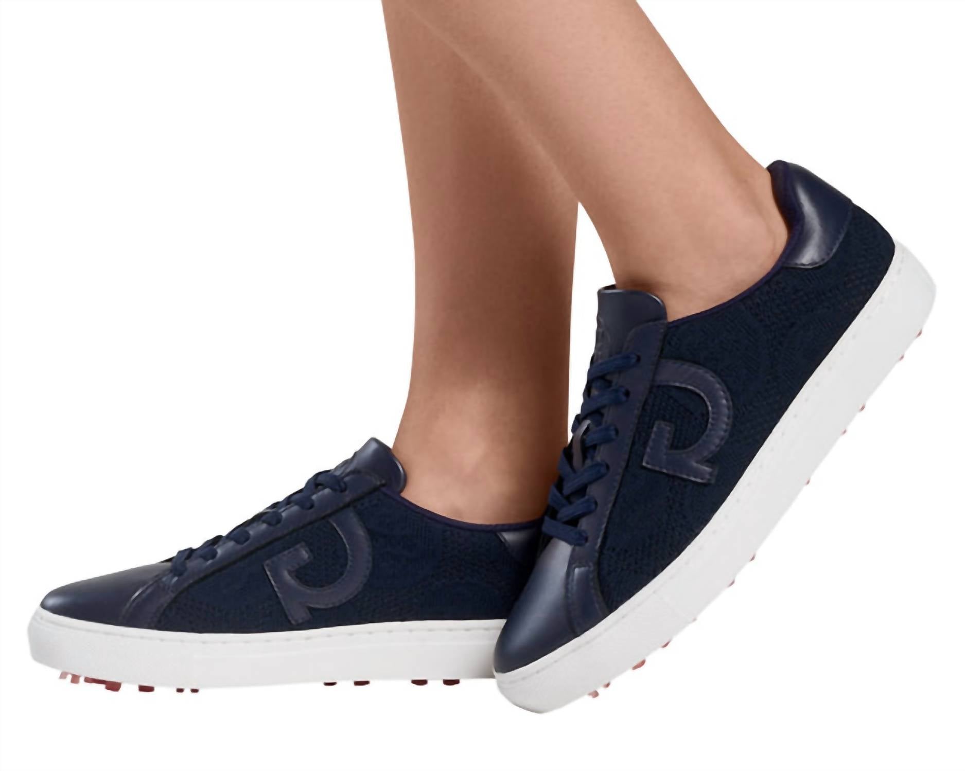 Stylish, comfortable and supportive. These athletic sneakers check all of the boxes. Step onto the green in style with the Women's Quarter G Knit Disruptor Golf Shoe by G/Fore in a striking Twilight hue. Designed for adult women who appreciate both fashion and function, these athletic shoes feature a modern round toe shape and a comfortable flat heel under 1 inch. Ideal for spring and vacation occasions, they seamlessly blend streetwear trends with golf-specific practicality. Perfect for enhancing your athletic stride while maintaining a sleek, sporty look.