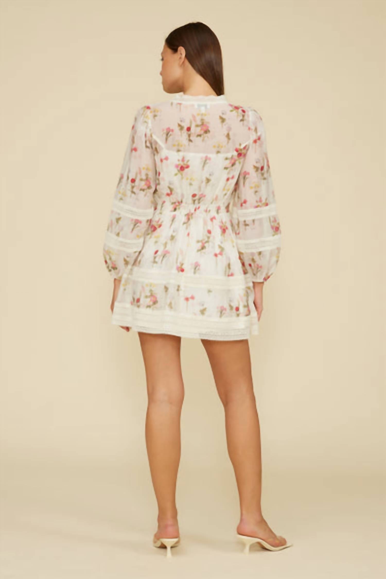 The kind of easy and flattering dress you'll be reaching for all season long. Introducing the Josefina Mini Dress by LUCY PARIS, a beautiful blend of elegance and charm in an ivory floral print. Featuring long sleeves and an A-line silhouette, it adds sophistication to any occasion. Made from lightweight Rayon, this dress is perfect for holiday parties with its pull-on closure for easy styling. Care: Dry clean only.
